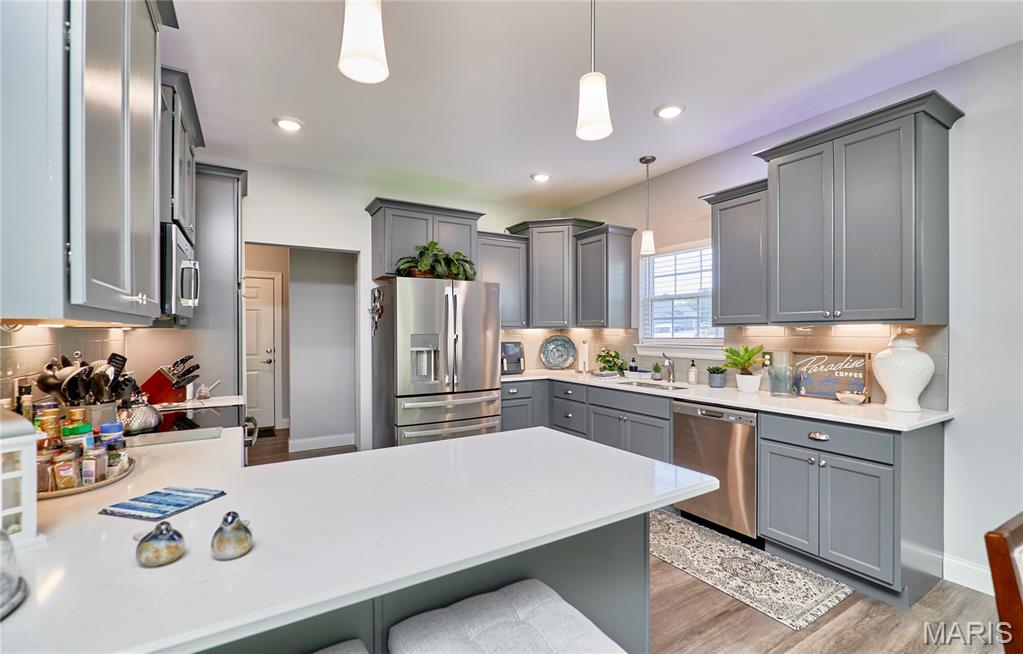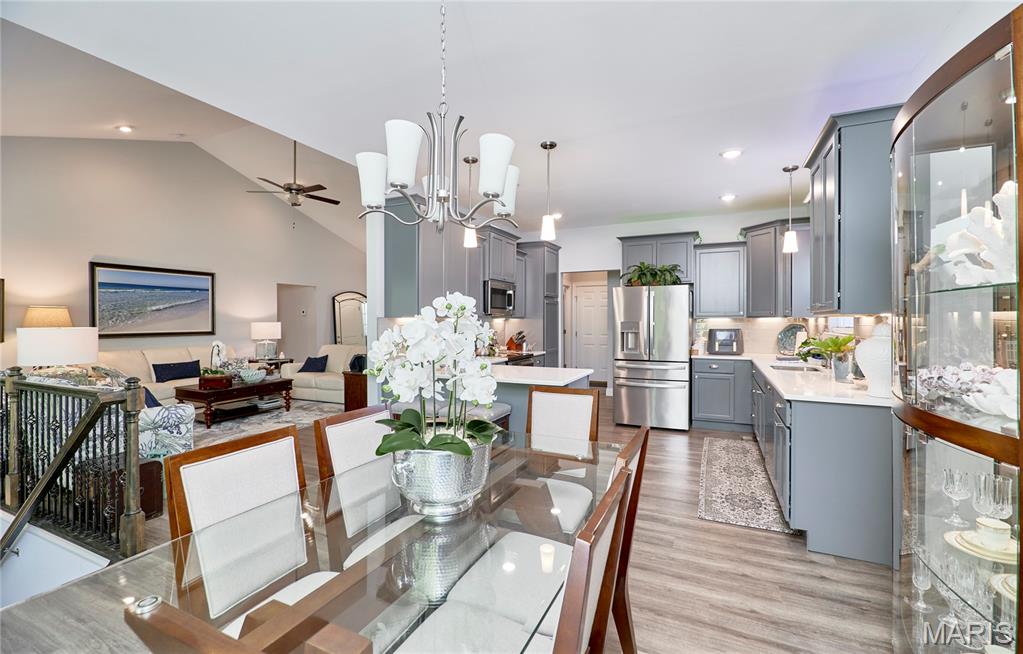 Stunning ranch home available in the Manors of Magnolia subdivision! This beautiful 3-bedroom, 2-bathroom residence is just 3 years old and offers over 1,800 square feet of living space. Highlighting its spacious design, the home features vaulted ceilings and an abundance of windows in the living area, creating a bright and welcoming atmosphere. The gourmet kitchen is a chef's dream, with quartz countertops, under-cabinet lighting, a stylish glass backsplash, stainless steel appliances, and an adjacent butler's pantry. The primary suite serves as a perfect retreat, complete with a walk-in closet, dual sinks, a soaker tub, and a separate shower for your convenience. Additionally, the full unfinished basement provides ample opportunity for customization to fit your needs, and the oversized garage offers extra space for storage or a workshop. Don't miss your chance to call this incredible property your new home! Schedule a showing today.