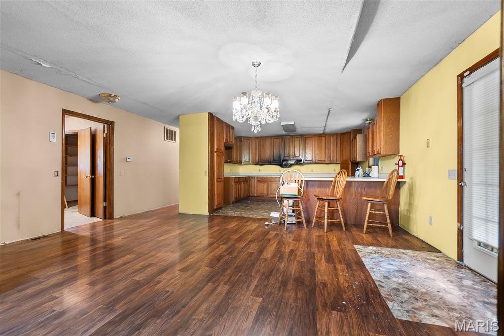 Looking for your next project? This large brick home just outside of town offers endless potential for the right buyer. Surrounded by mature trees in a peaceful setting, this property combines space, privacy, and opportunity. Property Highlights: Over 3,500 sq. ft. of living space, 5 bedrooms, 3 bathrooms, Full basement, stone fire place, 2-car garage plus 2-car carport, Metal spiral staircase, Built in 1986, Large shop for hobbies, storage, or business use, bathroom, and heated. The home needs a complete remodel—the roof has leaked, causing damage to the ceiling, walls, and floors, and there was a small fire in the kitchen. With vision and work, this property could be transformed into a truly stunning home in a beautiful, serene location. Whether you’re an investor, flipper, or someone ready to take on a big project, this home offers great bones, tons of space, and a shop that makes it even more valuable.