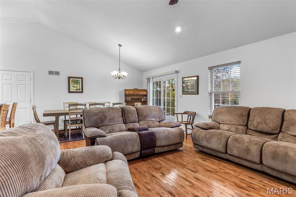 Welcome home to this charming 3-bedroom ranch! Step inside to beautiful hardwood floors that flow through the spacious living and dining room combo. The kitchen features granite countertops, stainless steel appliances, and plenty of cabinet space. Bedrooms offer newer carpet for added comfort. The full unfinished walk-out basement is plumbed for a bath and includes a convenient tuck-under garage—perfect for a lawn mower or golf cart. Enjoy peaceful views from your newer Composite Deck that walks out both the living room and master bedroom overlooking a private backyard that was once part of a 9-hole golf course—where deer often wander by.