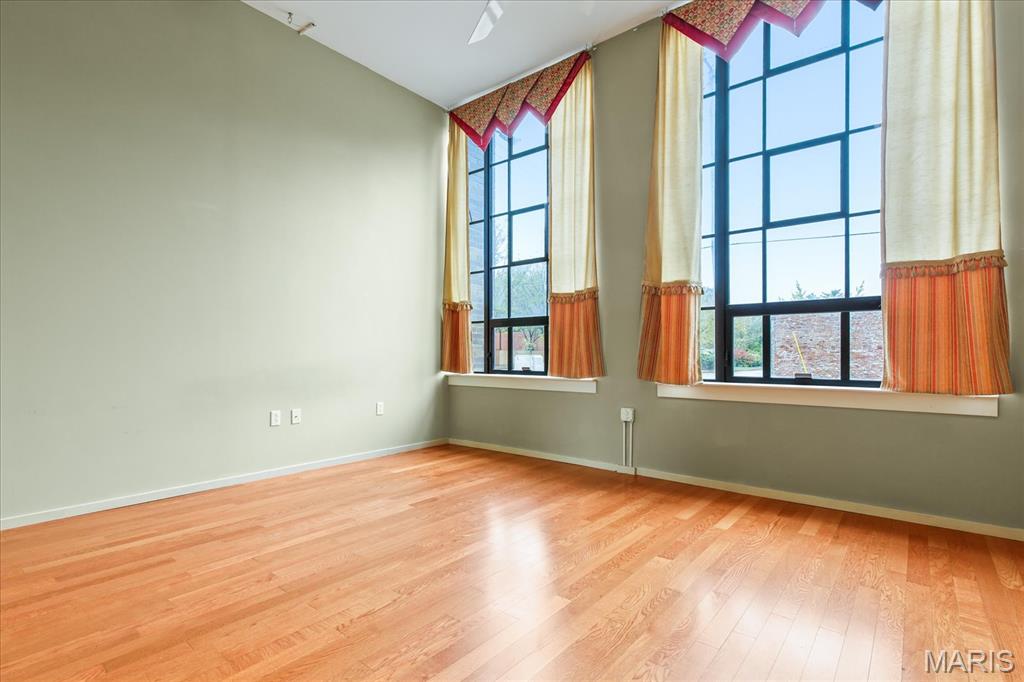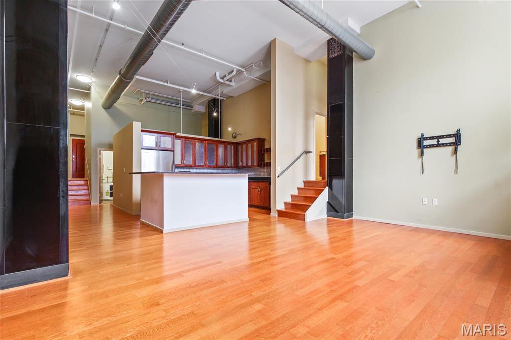 Enjoy low-maintenance condo living with all that Lafayette Square and downtown St. Louis has to offer! Discover the perfect blend of history in this restored 1930's brick building and modern comfort in this stylish first-floor 2-bedroom, 1,272 sq. ft. loft featuring soaring ceilings, open-concept living, and oversized windows that fill the space with natural light. The open floor plan seamlessly connects the living, dining, and kitchen areas—ideal for entertaining. Enjoy the convenience of in-unit laundry and an attached garage with an additional outdoor gated parking space, plus building amenities including secure gated access, elevator service, a barbecue area, and additional storage. Walkable to nearby Lafayette Square park, dining and bars, like Extra Wavy, Planter's House, and Prohibition to name a few, sporting and events at Enterprise Center, Energizer Park, and Union Station, and easy access to downtown St. Louis and major highways. All information to be verified.