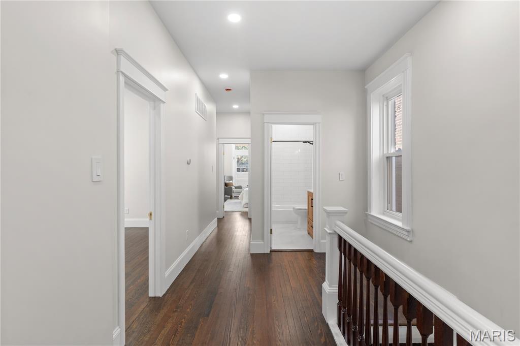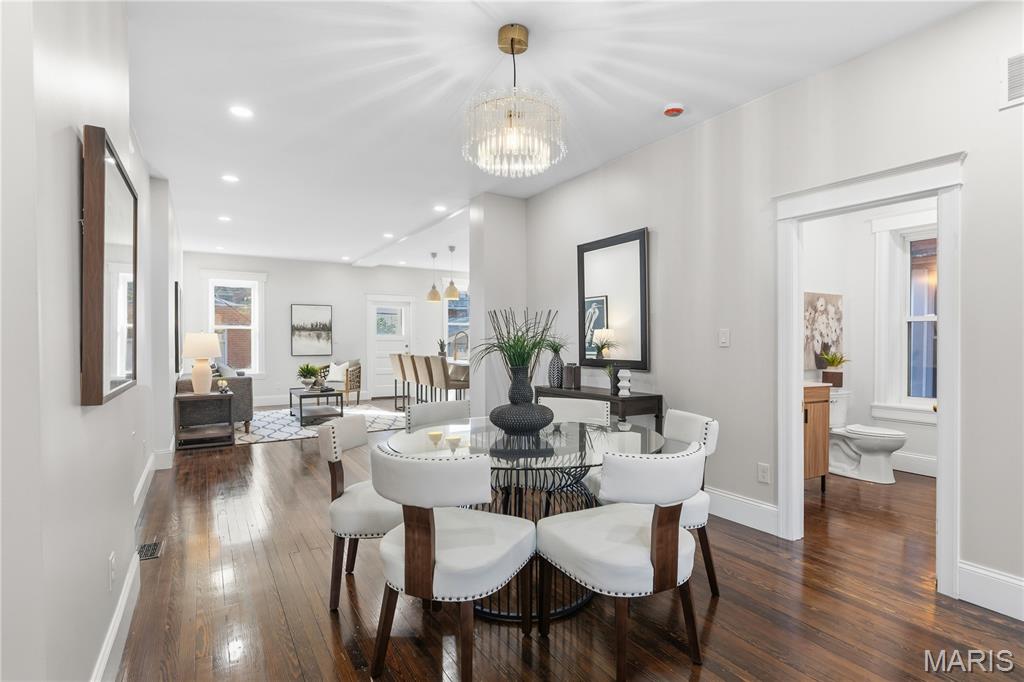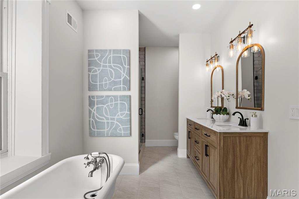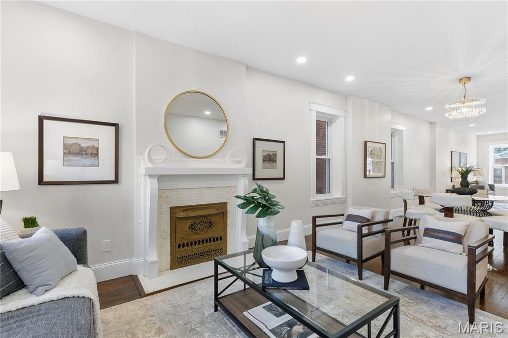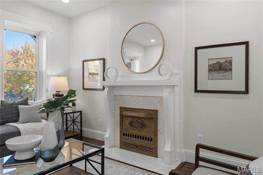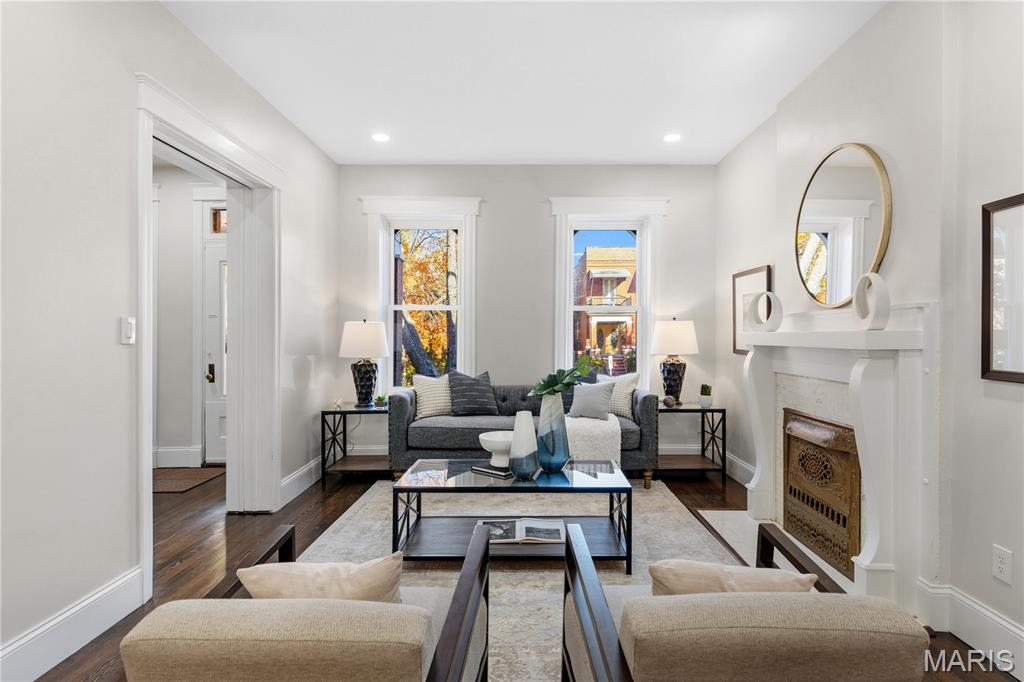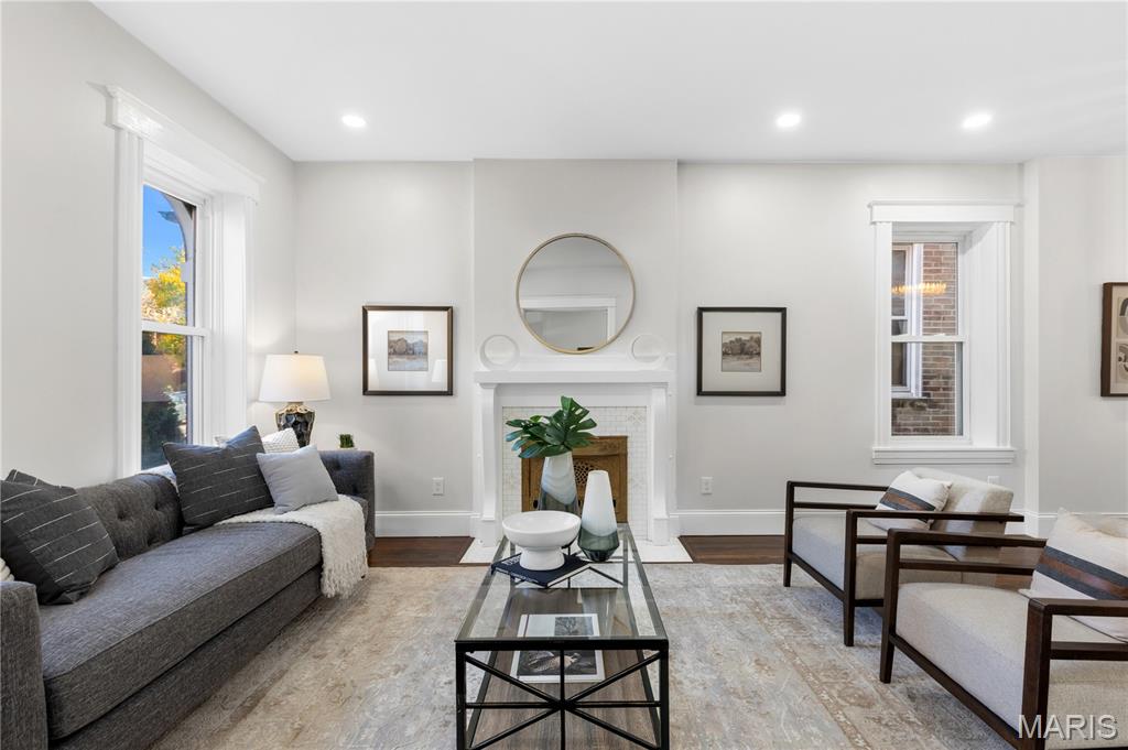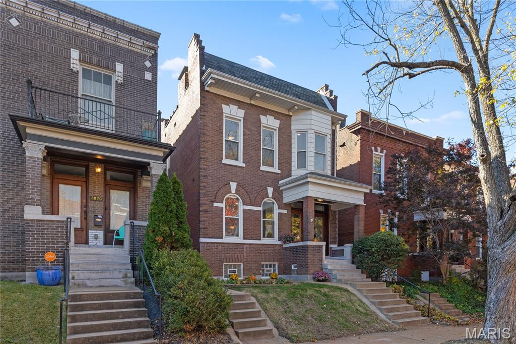 Welcome to this Tower Grove South estate which delivers the perfect balance of historic and modern features. Refinished heart pine floors and restored trim, doors, and fireplaces preserve timeless character, while every major system has been updated. Upgrades include a complete electrical rewire with new 200-amp panel, all new lighting fixtures, new roof and insulation, new water service, all-new PEX supply lines and PVC stacks, a brand-new hybrid electric water heater, and new vanities, sinks and toilets throughout. An open yet traditional floor plan preserves the home’s original flow. The first floor offers a welcoming foyer with original pocket door which flows naturally into the living room and dining room, blanketed in natural light from the huge windows and anchored by the stately historic fireplace. Next, you'll love the generous family room which opens into your new kitchen featuring custom cabinetry with abundant glass, soft-close doors and drawers, quartz countertops, new GE Cafe appliances, and a large walk-in pantry with matching cabinetry and workspace. Upstairs, you'll love four large bedrooms and two full baths. The hall bathroom features new ceramic tile floors, a bright subway tile shower surround and a new white-oak vanity. Float down the hallway into a spacious primary suite with private balcony and an en-suite bath with a dual-sink vanity, clawfoot soaking tub, separate custom tile shower, and spacious walk-in closet. But don't forget the convenient second-floor laundry and additional storage in the unfinished basement! Two one car garages separated by a brick wall provide the perfect place to park vehicles and store tools and equipment. Truly too many updates to list, don't miss your opportunity to own this lovely estate on Humphrey Street!