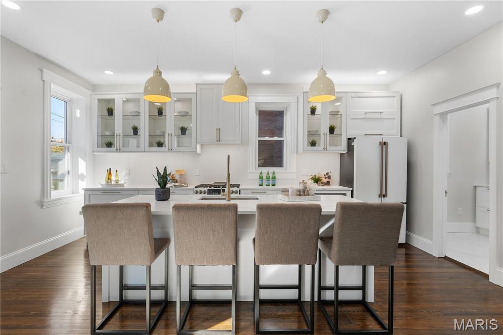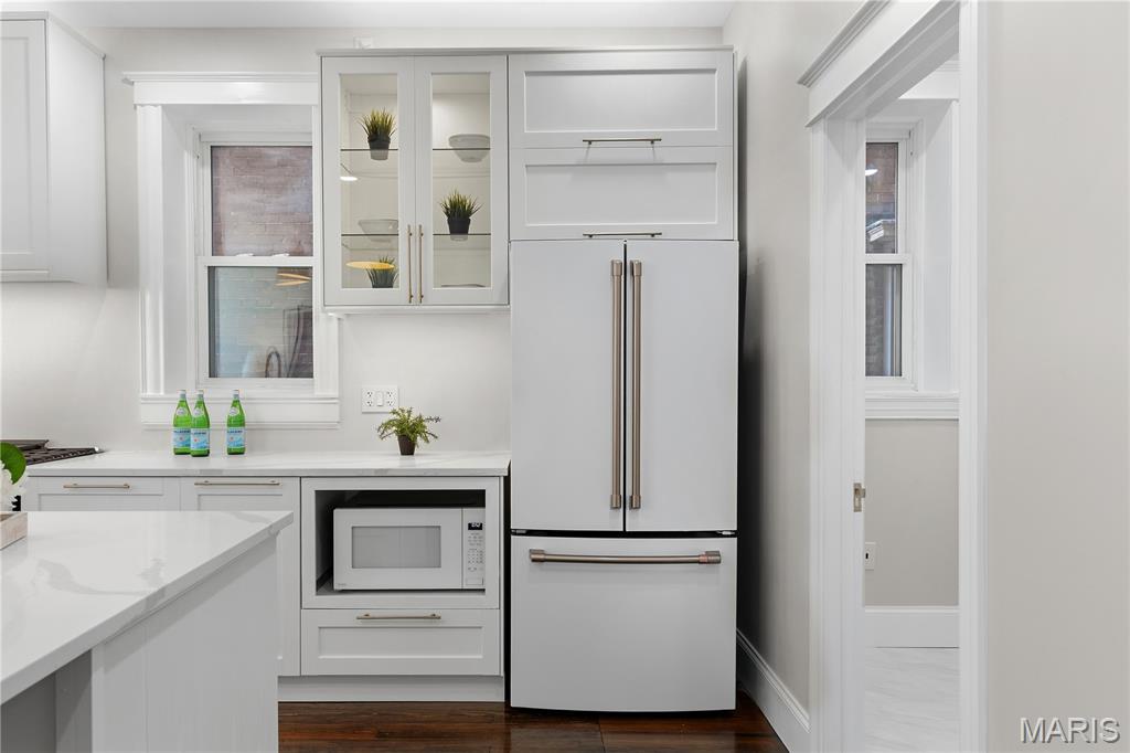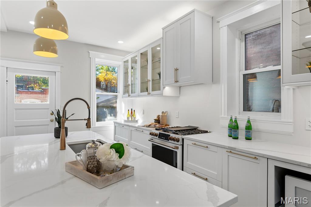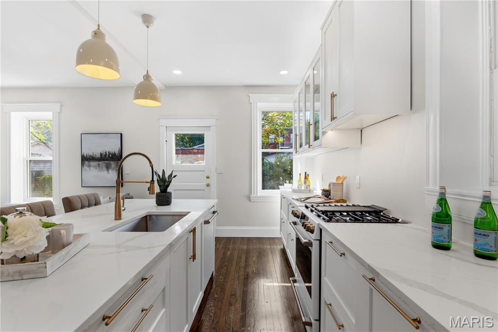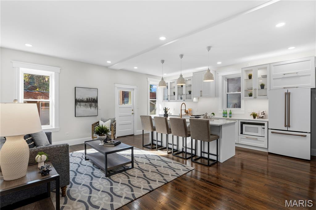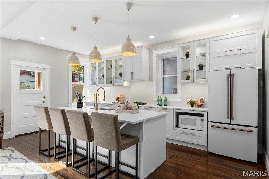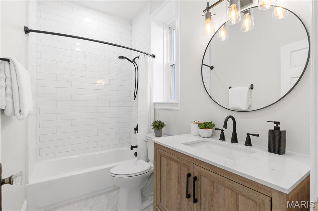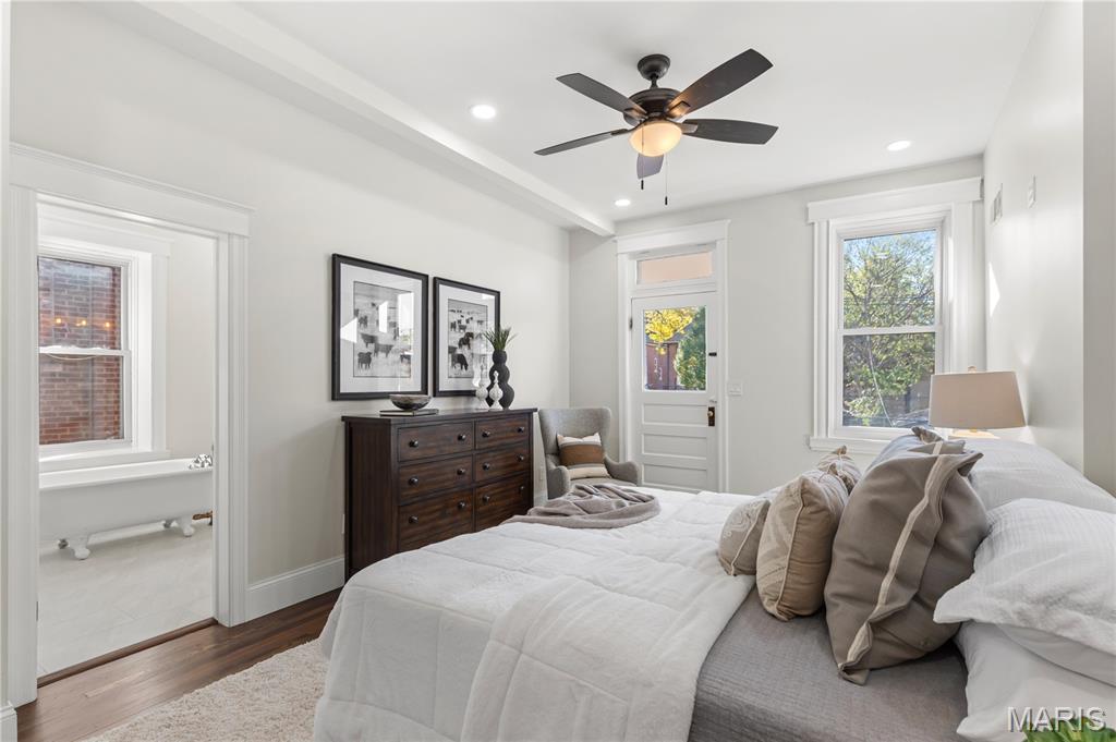Welcome to this Tower Grove South estate which delivers the perfect balance of historic and modern features. Refinished heart pine floors and restored trim, doors, and fireplaces preserve timeless character, while every major system has been updated. Upgrades include a complete electrical rewire with new 200-amp panel, all new lighting fixtures, new roof and insulation, new water service, all-new PEX supply lines and PVC stacks, a brand-new hybrid electric water heater, and new vanities, sinks and toilets throughout. An open yet traditional floor plan preserves the home’s original flow. The first floor offers a welcoming foyer with original pocket door which flows naturally into the living room and dining room, blanketed in natural light from the huge windows and anchored by the stately historic fireplace. Next, you'll love the generous family room which opens into your new kitchen featuring custom cabinetry with abundant glass, soft-close doors and drawers, quartz countertops, new GE Cafe appliances, and a large walk-in pantry with matching cabinetry and workspace. Upstairs, you'll love four large bedrooms and two full baths. The hall bathroom features new ceramic tile floors, a bright subway tile shower surround and a new white-oak vanity. Float down the hallway into a spacious primary suite with private balcony and an en-suite bath with a dual-sink vanity, clawfoot soaking tub, separate custom tile shower, and spacious walk-in closet. But don't forget the convenient second-floor laundry and additional storage in the unfinished basement! Two one car garages separated by a brick wall provide the perfect place to park vehicles and store tools and equipment. Truly too many updates to list, don't miss your opportunity to own this lovely estate on Humphrey Street!