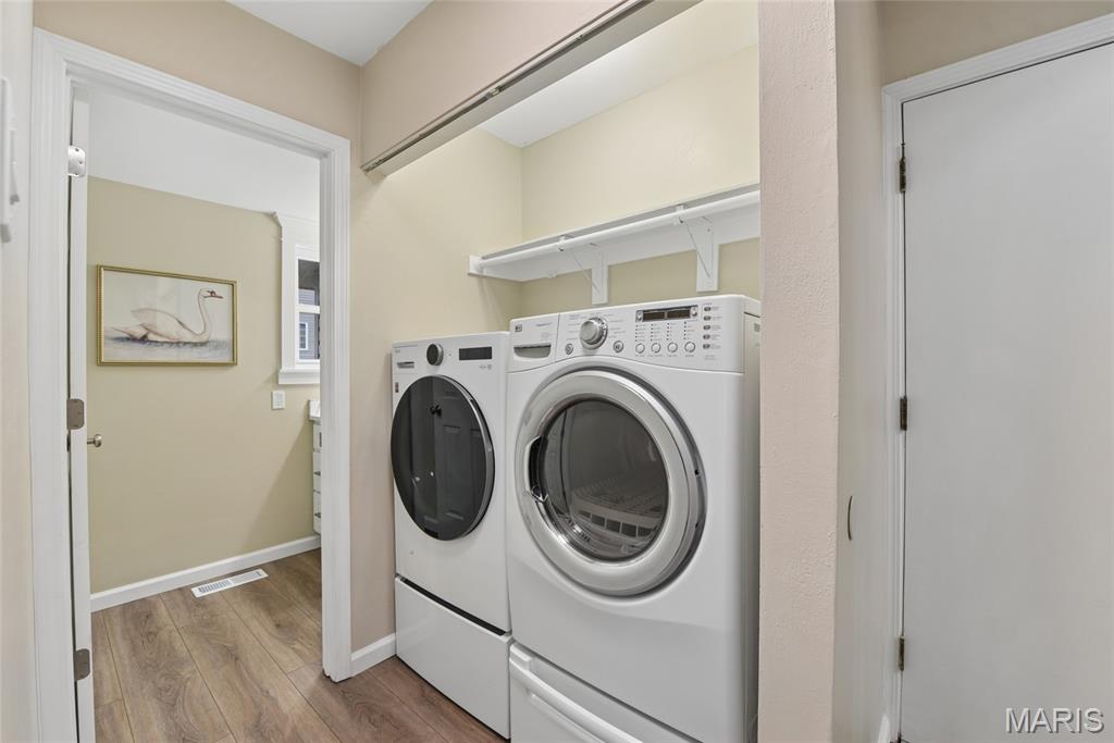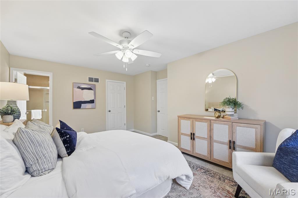 Welcome home! This charming, fresh, and move-in ready 4 bedroom, 2.5 bath Manchester home blends comfortable living with great entertaining spaces and is located in the desirable Parkway School District. The welcoming front porch leads into bright interiors with airy neutral finishes throughout. The dining room sits between the living room and kitchen, creating a natural flow for gatherings. The kitchen offers abundant cabinetry, pantry storage, and a center island, opening to the inviting family room with wood-burning fireplace and sliding glass doors to the patio and fully fenced backyard—perfect for relaxing or entertaining outdoors. Upstairs you'll find fresh carpet, four spacious bedrooms, and two full baths including a primary suite with walk-in closet and private ensuite. The large unfinished basement provides exceptional storage and a blank slate to create additional living space if desired. Main floor laundry and an attached two-car garage add everyday convenience. Conveniently located near shopping, restaurants, highways, parks, schools, and hospitals, making everyday living easy.