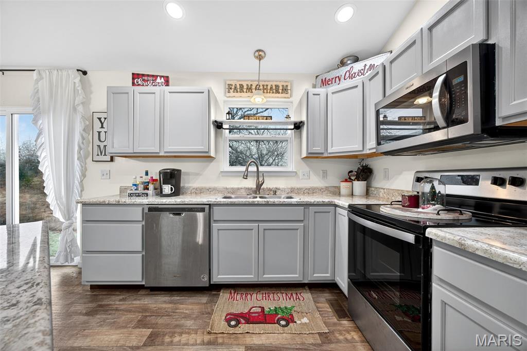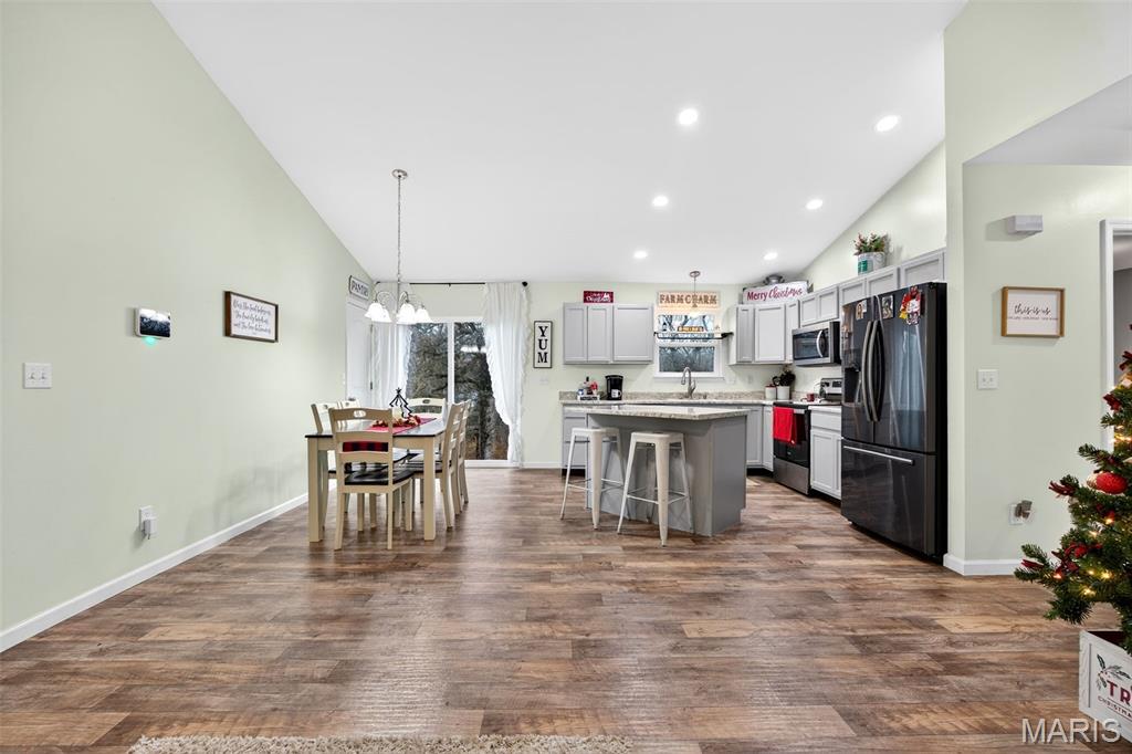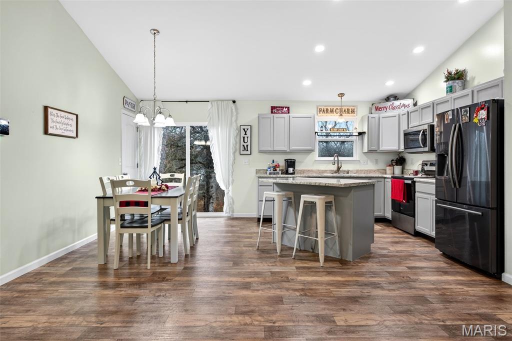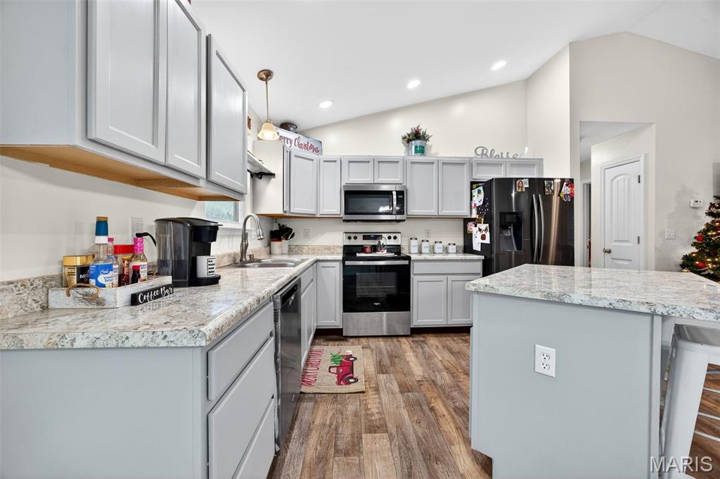Welcome home to this beautiful 3-bedroom, 2-bath ranch offering an open, airy floor plan and modern comfort throughout! Just 4 years new, this property features vaulted ceilings that create a spacious feel the moment you walk in. The bright, open kitchen offers plenty of counter space and natural light—perfect for cooking, gathering, and everyday living. All bedrooms are nicely sized, with a convenient main-floor laundry for easy living. The partially finished walkout basement provides extra living space with 2 additional rooms, tons of storage, and room to grow or customize to fit your needs. Outside, you’ll love the 3-car garage and the expansive 0.54 +/-acre lot, offering privacy, room to play, or outdoor entertaining. This well-maintained home delivers space, comfort, and functionality—don’t miss your chance to make it yours!