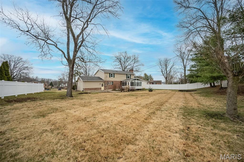 Beautifully updated 2-story home in the heart of Ballwin! Welcome home to this inviting, move-in-ready property featuring a newly poured concrete driveway and a landscaped front yard poised to bloom this spring. Step inside to a light-filled foyer that opens to an expansive family room, complete with built-in shelving, gleaming hardwood floors, and a brick-encased gas fireplace. Enjoy additional living space in the charming all-season room, offering tranquil views of the level backyard and easy access to the outdoor patio—perfect for entertaining or relaxing. The main floor also includes a dining area and an updated kitchen featuring granite countertops, custom stone backsplash, and ample storage. Upstairs, you’ll find brand-new carpet throughout, a spacious primary bedroom with a walk-in closet, and an en suite bath. Three additional bedrooms and a full hall bath provide room for everyone. The finished lower level adds even more versatility with a recreation room, office space, a dedicated laundry area, and abundant storage. Additional upgrades include a tankless water heater for instant, energy-efficient hot water. Located within the award-winning Ballwin community, you’ll enjoy access to top-tier amenities such as The Pointe at Ballwin Commons, North Pointe Aquatic Center, and Ballwin Golf Course. A fantastic home in an unbeatable location!