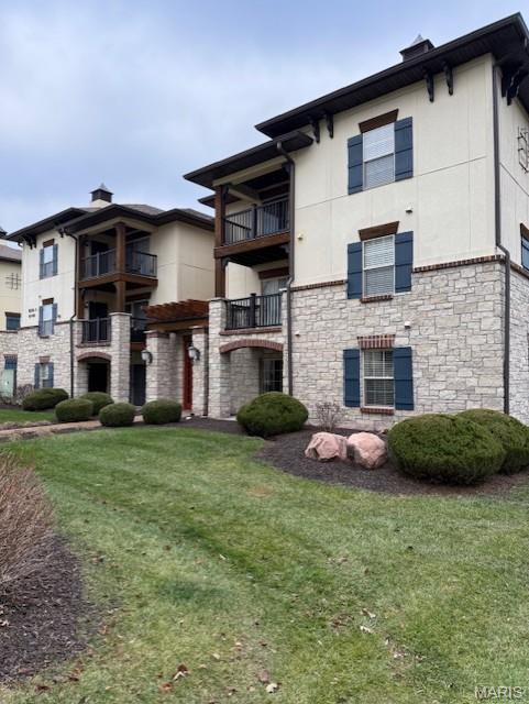 This beautiful open floor plan condo features upgraded laminate flooring and vaulted ceilings. The kitchen offers custom cabinetry, stainless steel appliances, ample counter and cabinet space, pantry, breakfast bar, and refrigerator. Master bedroom has ceiling fan with coffered ceiling, private master bath with separate shower & garden tub, double sink vanity. Living room is spacious and offers access to the private covered deck overlooking the nearby park, pond, and jogging trail. This complex is secured, and you must have the code for access. Francis Howell School District and easy access to nearby shopping, community college and highways.