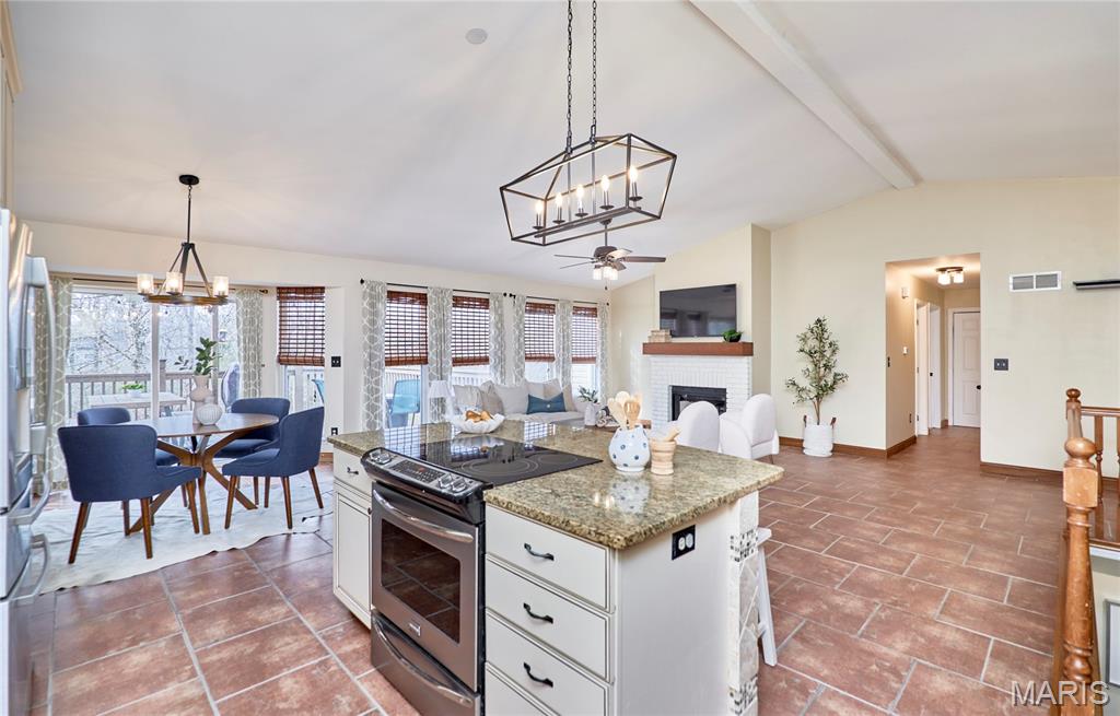 Interior Decor Ceiling Fan(s),Chandelier,Double Vanity,Entrance Foyer,Granite Counters,Kitchen Island,Kitchen/Dining Room Combo,Lever Faucets,Open Floorplan,Shower,Soaking Tub,Vaulted Ceiling(s),Walk-In Closet(s)