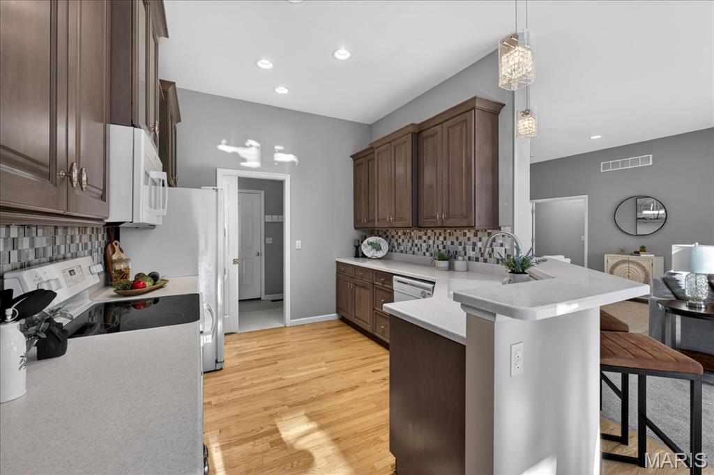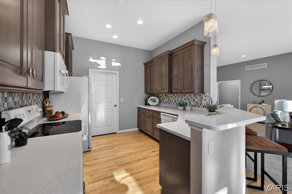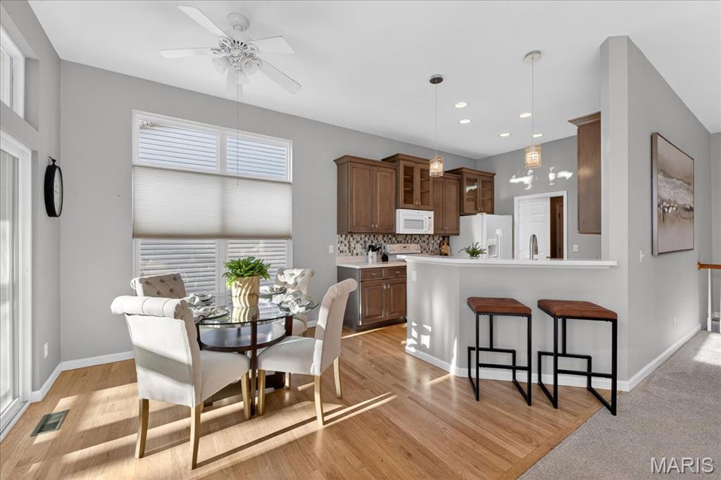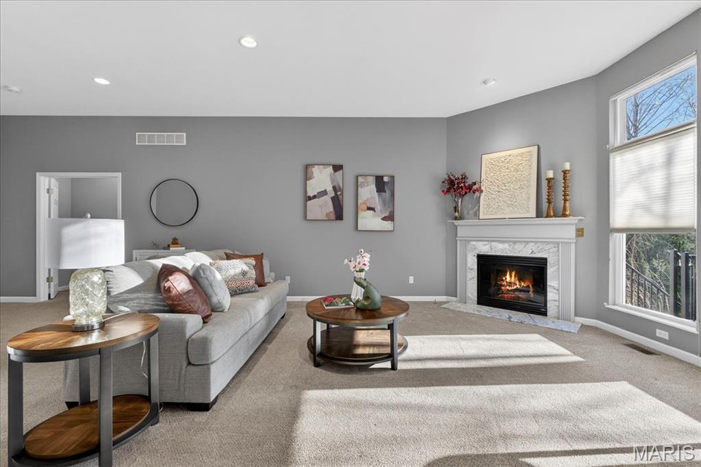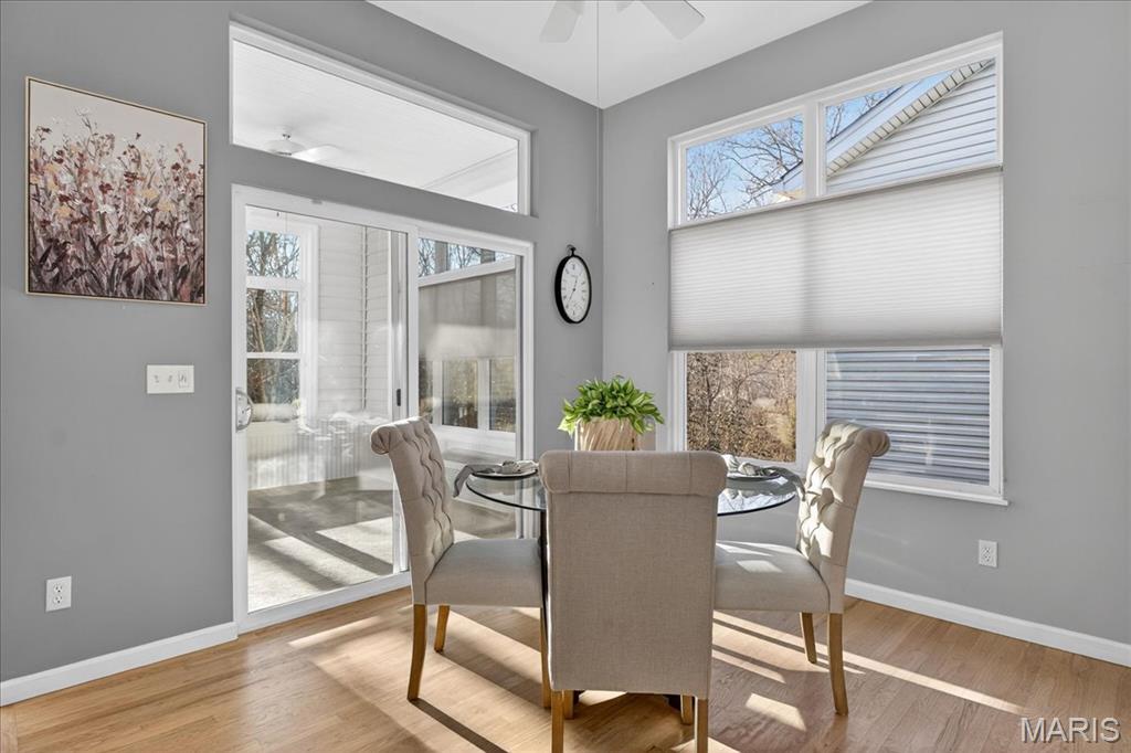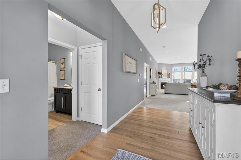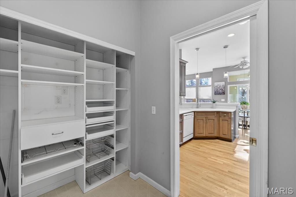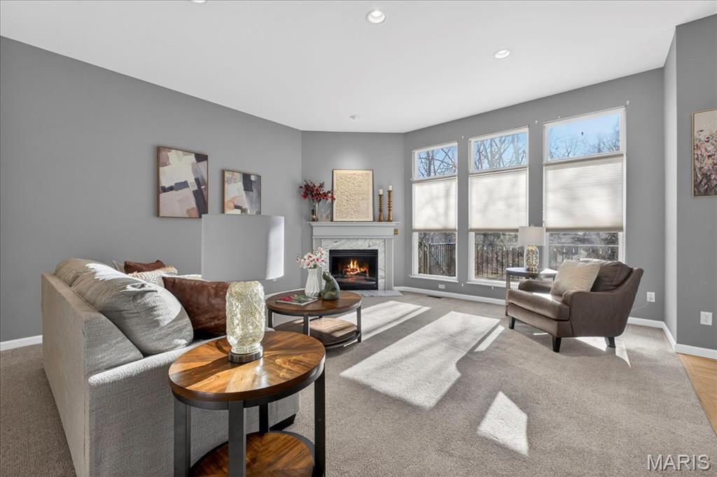 Open House cancelled under contract!!! Welcome to this beautifully maintained brick-front ranch offering bright, open living spaces and a flexible layout ideal for comfortable living and entertaining. The inviting main level features soaring ceilings, large windows that fill the home with abundant natural light, and a spacious great room with a cozy gas fireplace. The recently updated kitchen includes abundant cabinet storage, solid-surface counters, breakfast bar, adjoining dining area, and a walk-in pantry with custom shelving for exceptional organization. A light-filled four seasons room and open dining/flex space provide additional room for relaxing, hosting guests, or working from home. The serene primary bedroom offers a bright bay window sitting area with peaceful backyard views, along with a beautifully updated ensuite bath featuring dual vanities, soaking tub, separate shower, and custom walk in closet. Well-appointed secondary bedrooms, neutral finishes, and updated lighting enhance the home’s warm and welcoming feel. Enjoy multiple indoor-outdoor living options with an elevated composite deck, spacious covered patio, and tree-lined common-ground views. The finished walkout lower level provides incredible extra living space with a large rec/family room, kitchenette/wet bar area, bedroom/bonus room potential, full bath access, and abundant natural light — plus a sizable unfinished area ideal for storage or future finish possibilities. Move-in ready and thoughtfully designed, this home offers style, function, and versatility in a desirable neighborhood setting.