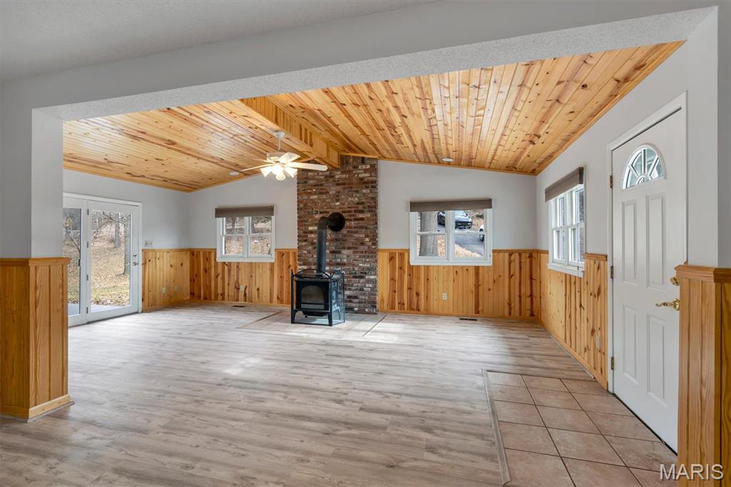 Nicely remodeled and updated three bedroom two bathroom home on 2+/- acres so close to Northwest High School and Highway 30. Looking for an open floor plan with room for the family to spread out and have their own space, plus room to entertain inside and out-you found it! Step into the beautiful great room with a rich tongue and groove knotty pine ceiling and chair rails around the room. Don't worry about the cold winters with the wood burning stove! The entire main level has new laminate flooring throughout with the exception of the two carpeted bedrooms on the main level. Great room, living room, dining room, kitchen, and laundry room finish off the main level. Half of the lower level is finished with a bedroom, ensuite bathroom, family room. and walk out to a huge backyard! The other half of the lower level is ready for storage or add more living space. What's not to like about this house? More features/updates include: an oversize two car garage with new concrete floor, new sidewalks, new patio, new windows throughout the main and lower level, and a fabulous large maintenance free composite deck with railings! Don't miss this one!