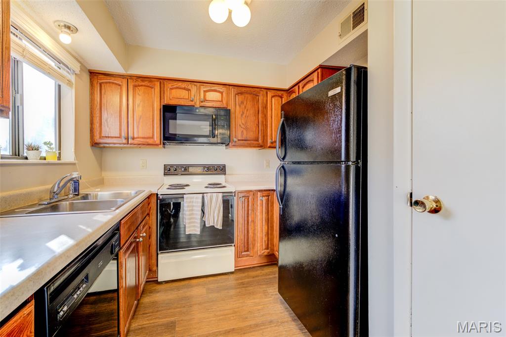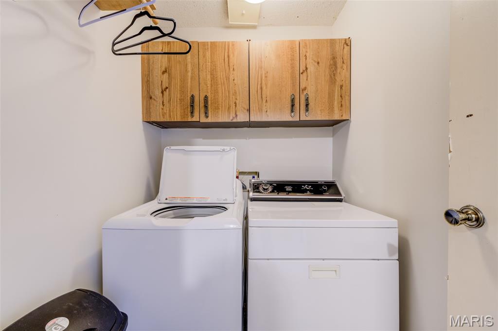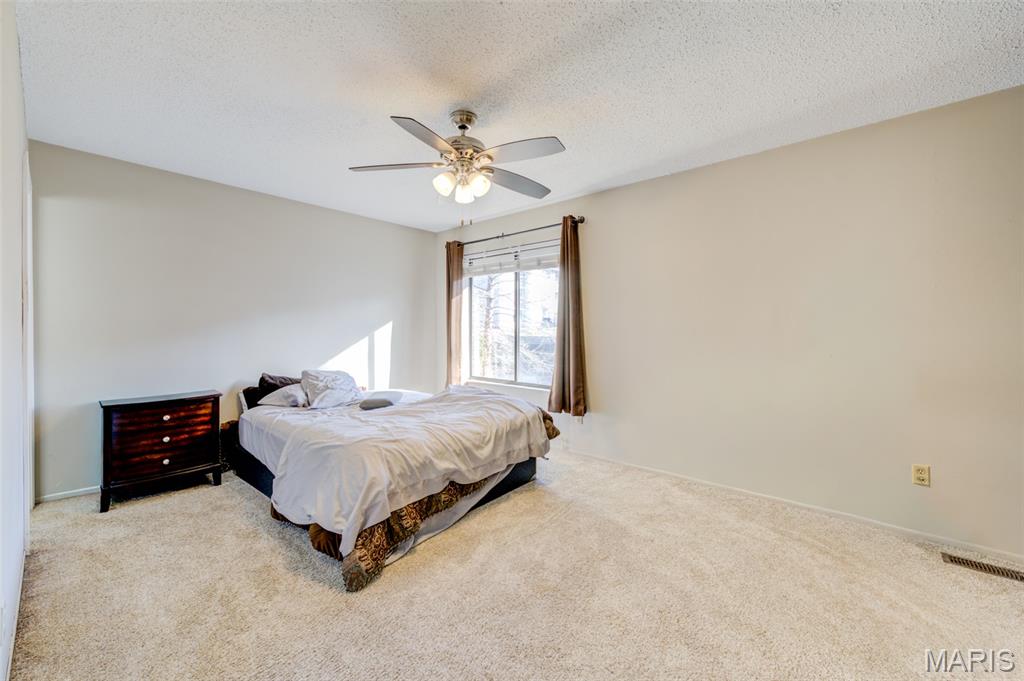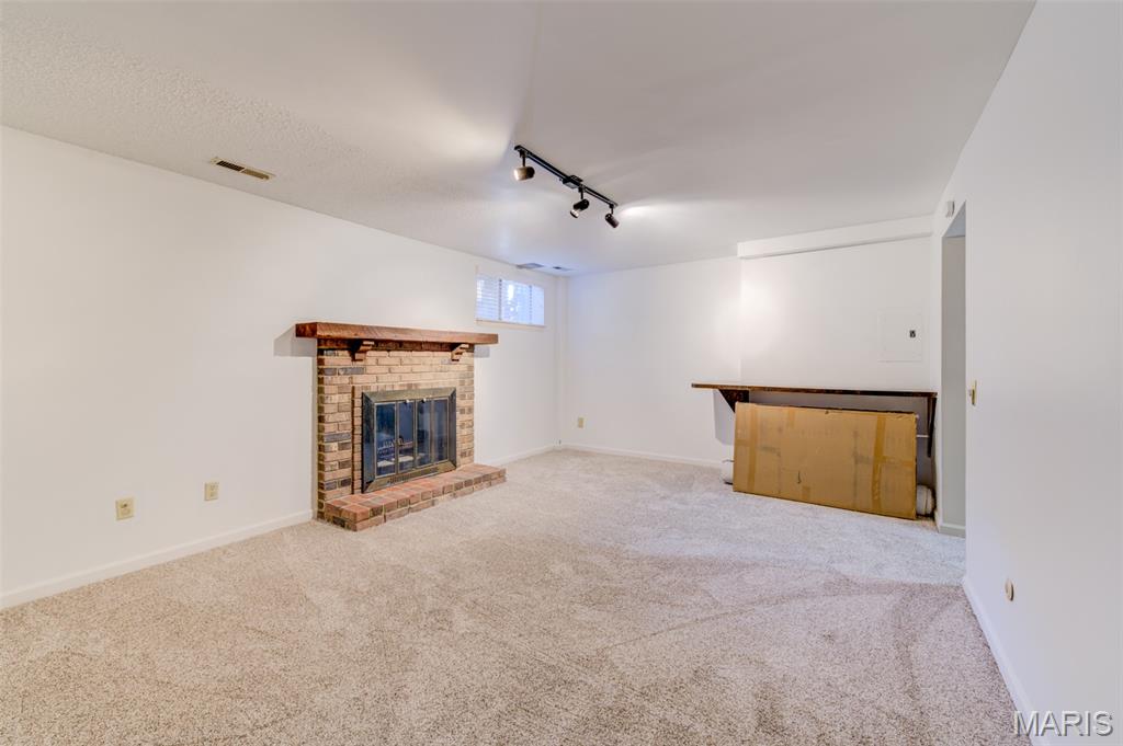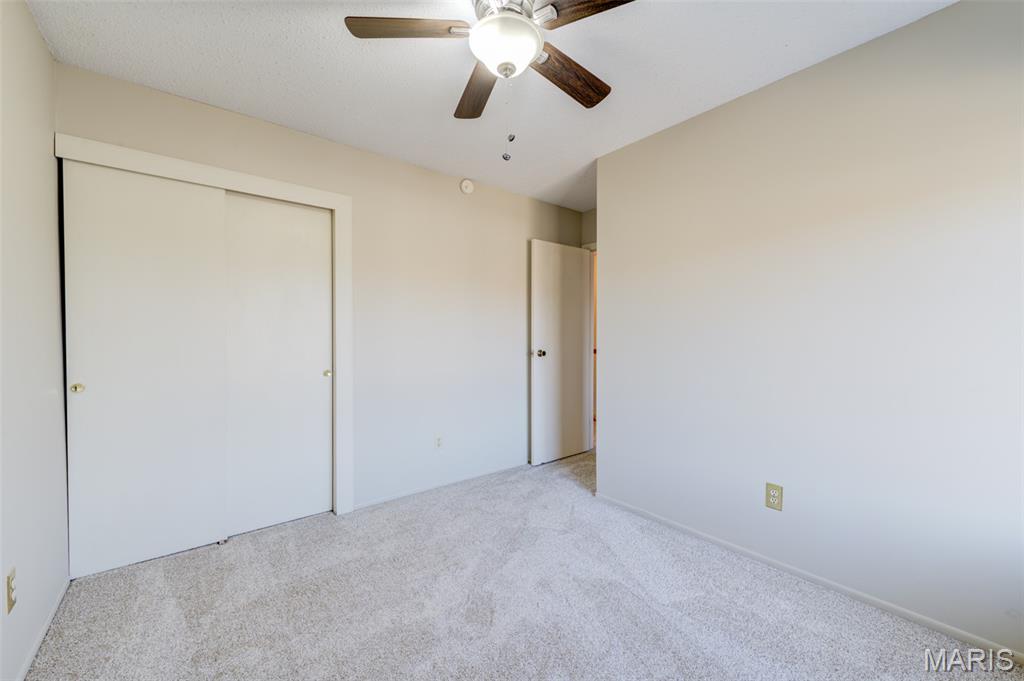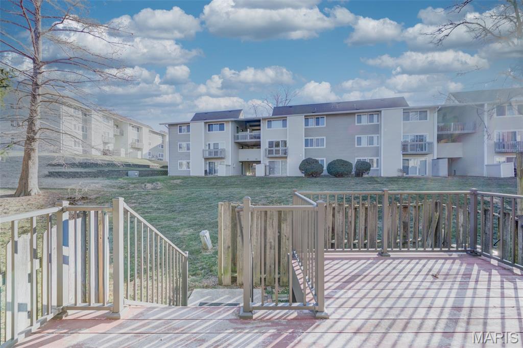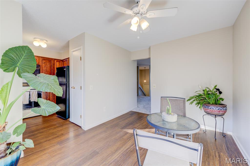 Wonderful rare opportunity to own a well-maintained end-unit townhouse in Driftwood Place Condos—an intimate community of just 30 units that rarely come on the market. This spacious home offers a versatile floor plan with 3 bedrooms, 2.5 baths, an attached garage with insulated door and newer opener, an extended upgraded wood deck, and a finished basement with inviting family room for a total of 1,535 sq ft of finished living space. The lot backs to peaceful common ground on a quiet dead-end street with no cut-through traffic. Inside, enjoy abundant natural light, warm neutral décor, fresh paint, updated carpet, upgraded baseboards, and luxury vinyl plank flooring. The generous primary suite features a custom closet organizer and a beautifully renovated bath. Bright, cheery kitchen with wood cabinetry, double sink, and updated refrigerator, dishwasher, and microwave. Additional highlights include second-floor laundry with built-in cabinets, ample closet space, updated lighting, ceiling fans, exterior lights, window blinds, and a 2017 water heater. This move-in ready property boasts low condo fees, Parkway School District and low-maintenance exterior with vinyl siding and brick veneer. Conveniently located near Creve Coeur Lake, YMCA, shopping, dining, medical facilities, the Airport, local parks and Maryland Heights Community Center.