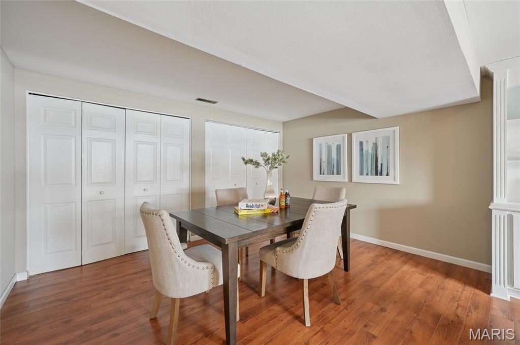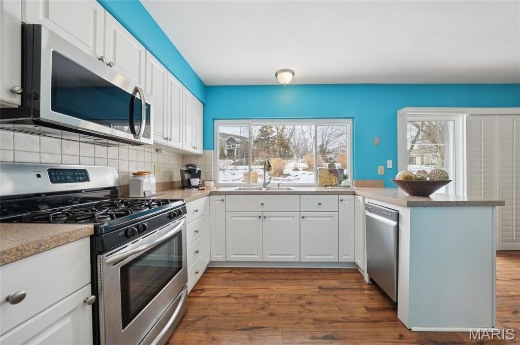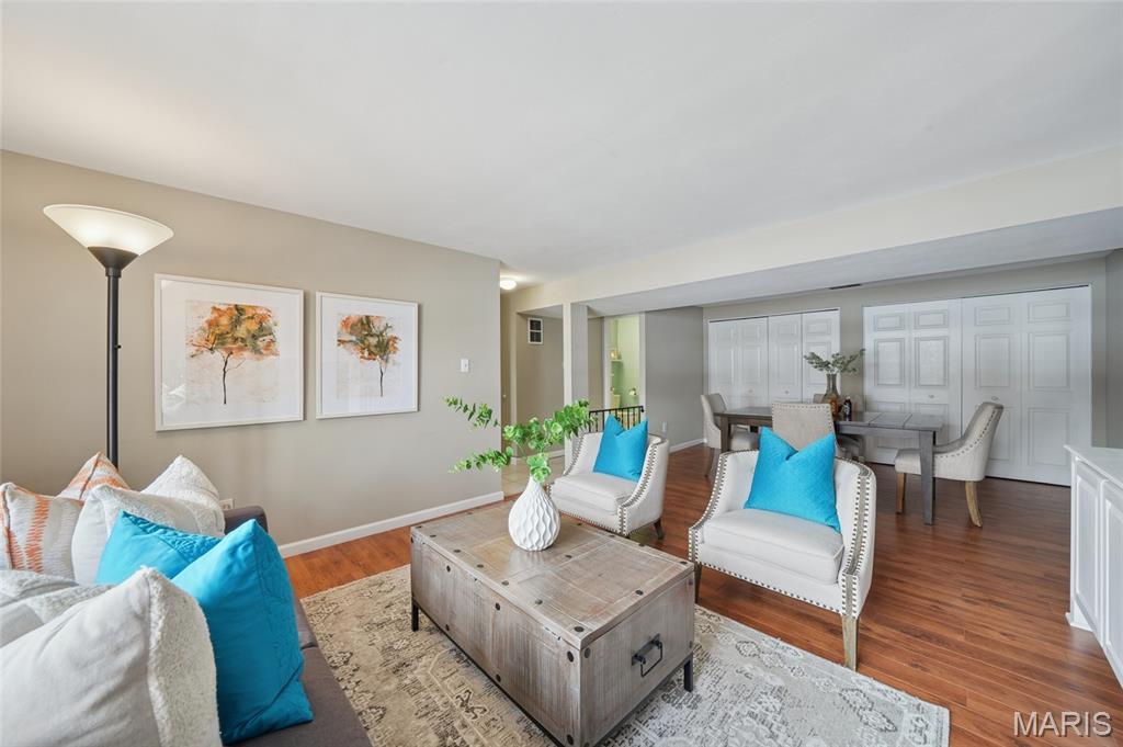 Welcome home to this beautiful 3-bedroom, 2-bath multi-level residence nestled in Ballwin’s sought-after Westglen Village. The inviting upper level has an open floor plan featuring a spacious great room, kitchen, and breakfast room highlighted by stylish laminate flooring. The kitchen is a standout with a large picture window over the sink offering serene backyard views, stainless steel appliances including a gas range, microwave, dishwasher, and refrigerator, plus a convenient pantry. Step directly from the breakfast room to the backyard—perfect for indoor-outdoor living. Outside, enjoy a fully fenced yard with a stamped concrete patio and beautifully landscaped grounds, ideal for relaxing or entertaining. The lower level offers a cozy family room anchored by a wood-burning fireplace, creating the perfect retreat. Residents love the neighborhood pool, while New Ballwin Park is just a short walk away and Castlewood State Park is only a five-minute drive. With HVAC replaced in 2015, close proximity to shopping and restaurants, and located within award-winning Rockwood Schools, this home truly has it all.