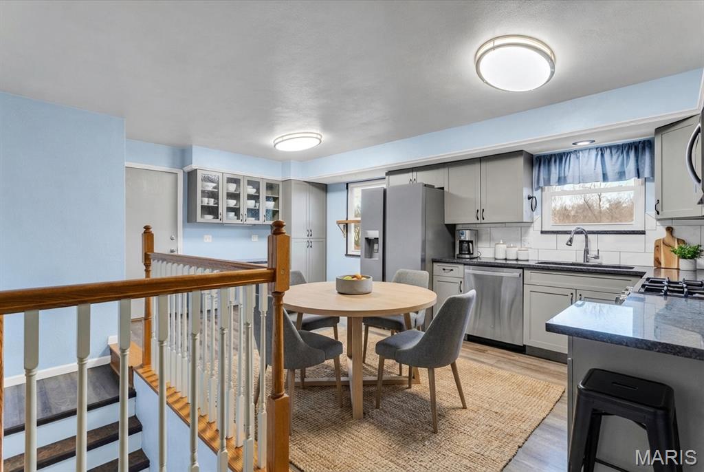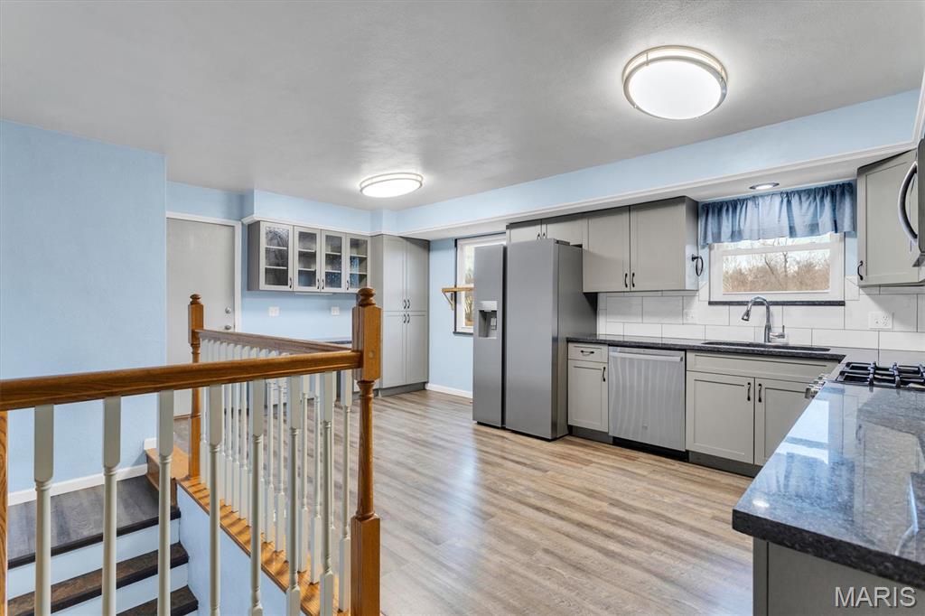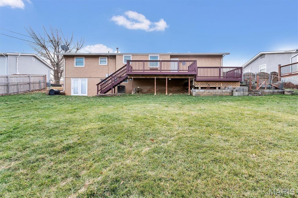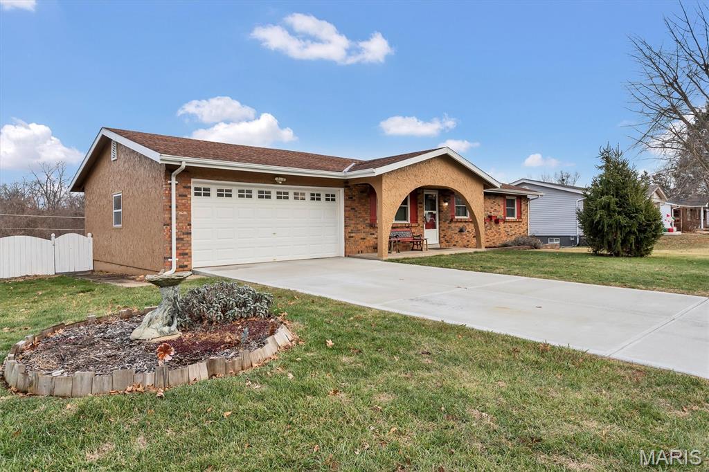 PRICE REDUCED! This well-maintained ranch-style home in Red Oak Estates is ready for its next owner to add their personal touch. This home has been thoughtfully updated throughout its ownership and offers 3 bedrooms, 2.5 baths, and a partially finished walk-out basement. The main level features newer vinyl plank flooring throughout. The living room feels warm and inviting, with textured walls and custom ceiling trim painted to add distinctive character. The eat-in kitchen continues the charm with the gray custom cabinetry, adding abundant storage. Granite countertops paired with a modern backsplash complete the look. The kitchen comes fully equipped with stainless steel appliances, including a refrigerator/ice maker, a gas stove, a built-in microwave, and a dishwasher. The additional built-in gray cabinetry offers the perfect spot for a china cabinet, complemented by a desk that provides flexible space for a craft area or home office. The primary bedroom offers an en suite bathroom complete with a shower and built-in seating. An additional full bathroom on the main level provides added convenience. Enjoy the beautifully maintained two-tier deck, ideal for entertaining and overlooking a spacious, fenced backyard with wooded views. The generously sized, partially finished basement enhances the home with a dry bar, secured wooden shelving, refrigerator, electric fireplace, and half bath, creating an ideal setting for a recreation room, family room, or multi-purpose and flexible living area. The laundry room is equipped with washer and dryer hookups and ample cabinetry and shelving for storage. The walk-out basement offers direct access to the patio, deck, and fully fenced backyard. The two-car garage is equipped with built-in cabinetry, shelving, and a functional workspace. Recent exterior updates include a new driveway completed two years ago and full exterior stucco painting in 2024. The front patio features an arched stucco entry, painted shutters, and attached garden boxes, with existing brick landscaping ready for your personal touch. The home is located in a private subdivision near schools and highway access, providing the perfect balance of comfort and convenience. Schedule your private tour to see this beautiful property in person. If you’re looking for a home to start the new year that you can add your personal touch to, this one is a must-see! Selling the home AS IS.