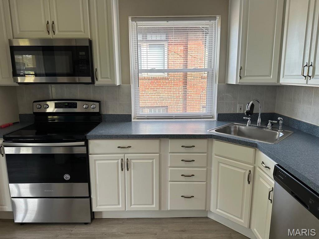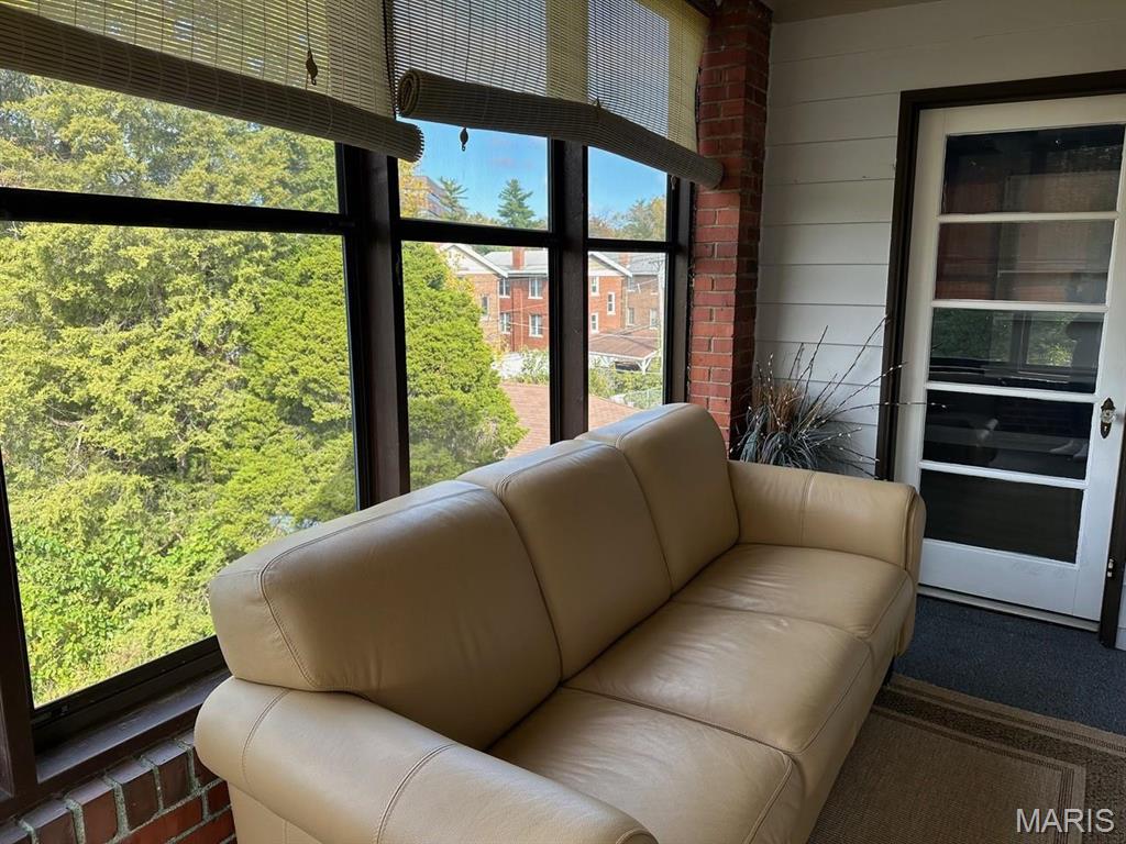 Charming brick duplex in CLAYTON SCHOOLS! This upper level unit features two bedrooms and 1 bath, some hardwood floors, crown molding, gas FP, & white 6-panel door, kitchen has white cabinets, enclosed porch w/french doors*Basement w/storage available, washer/dryer hook-ups, Level & partially fenced backyard. Highly sought after Clayton Schools, near Brentwood Promenade, downtown Clayton, & Forest Park. Location: Upper Level