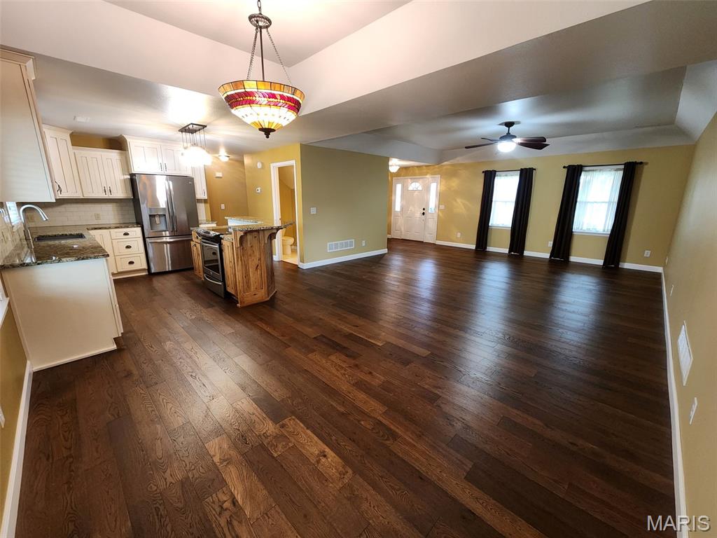 Welcome home to this well-appointed 3-bedroom, 2.5-bath residence situated on a desirable corner lot in Palmyra. This property offers a thoughtful blend of style, comfort, and functionality throughout. The kitchen is designed to impress with granite countertops, custom soft-close cabinetry, and stainless-steel appliances including the refrigerator and stove, which convey with the home. The open flow makes it ideal for both everyday living and entertaining. The primary suite features a spacious walk-in closet and a luxury en-suite bathroom complete with a double vanity. Convenient same-level laundry adds to the home's practical layout, while the tankless gas water heater ensures endless hot water. Outside, enjoy a nice-sized yard perfect for entertaining, complemented by a covered back porch for relaxing evenings. The additional detached garage provides extra storage or workspace, adding versatility to the property. A well-rounded home with quality finishes, modern conveniences, and a great location - this is one you won't want to miss.