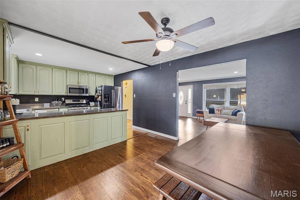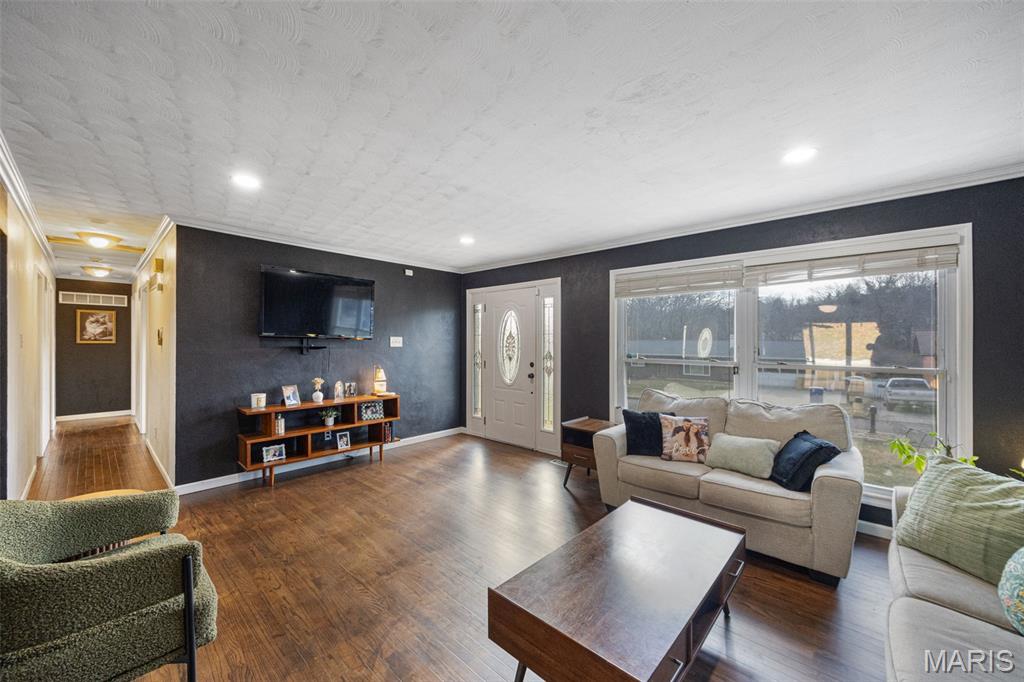 Prepare to be captivated by 1715 Woodwind Dr, where sophisticated elegance meets irresistible charm! Nestled in the coveted Seckman school district, this chic ranch is more than just a home—it's a lifestyle upgrade. Imagine waking up in your spacious primary bedroom, complete with a private en-suite bathroom. Three generously sized bedrooms offer plenty of room for family or guests, with a conveniently located second full bathroom just down the hall. The kitchen is an entertainer's dream, boasting ample counter space and storage for all your culinary adventures. But wait, there's more! Step into not one, but two inviting living areas, perfect for cozy nights in or lively gatherings. Gleaming refinished hardwood floors flow throughout the home, complemented by new flooring in the great room and bathroom. Outside, the backyard beckons with endless possibilities—kids' playtime, summer barbecues, or simply unwinding after a long day. New concrete sidewalks lead to the side gate and shed, adding both convenience and curb appeal. And the best part? The basement has been completely waterproofed with a new sump pump and a lifetime warranty, ensuring worry-free living no matter what the Midwest weather throws our way. No expense was spared in the consideration of future peace of mind. The aesthetic of this home has to be experienced in person!