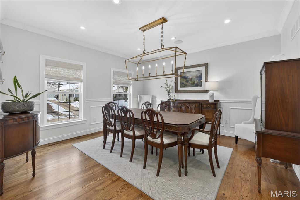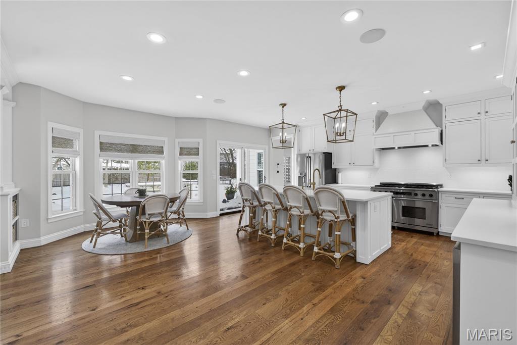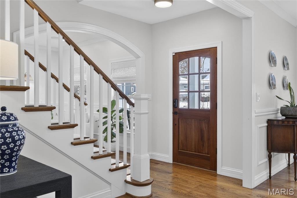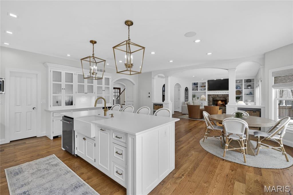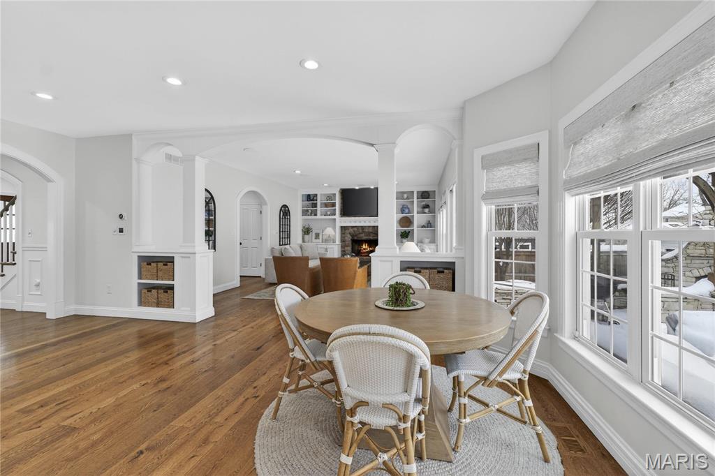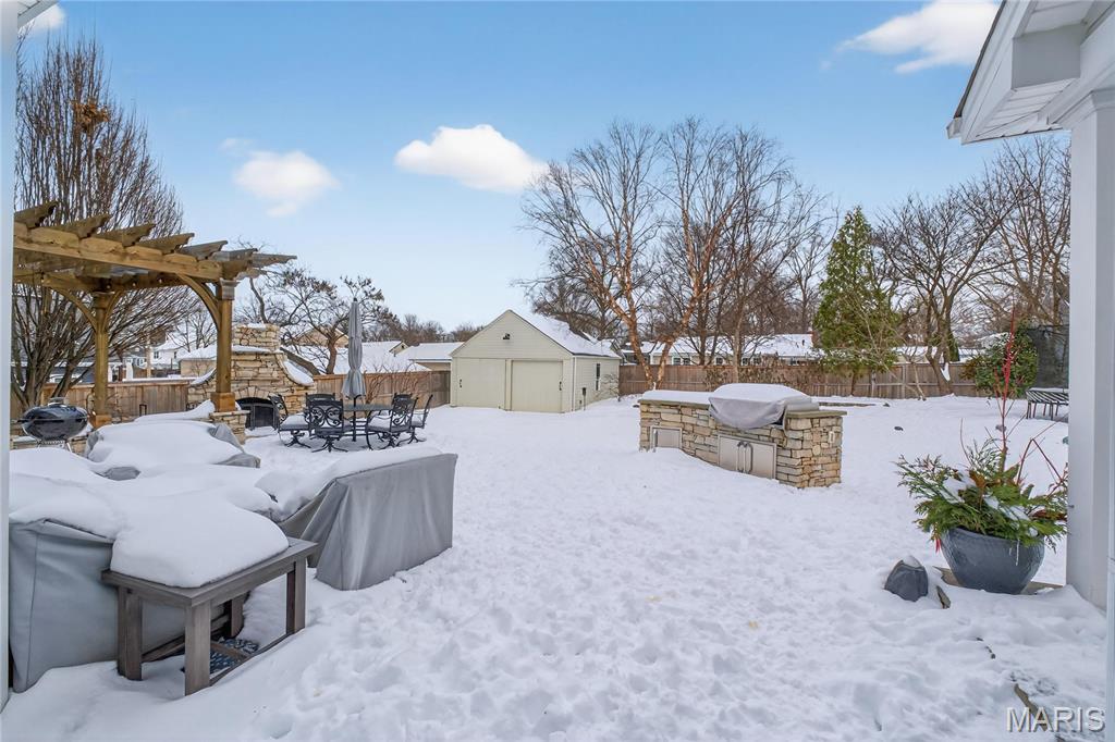 Meticulously Maintained and Expertly Renovated Two Story in the Heart of Kirkwood! Turn Key Home with over 5,000 total sq ft of living space has been impeccably kept. Welcoming Front Porch and Stately wood front door with glass inlay. Warm, Refinished hardwood floors greet you upon walking in and run throughout main level. Separate dining room and living Room both with wainscoting flank entry foyer. Family Room with gas fireplace and built in shelves opens to spacious breakfast Room with bay window and new glass sliding door (2022). Recessed lighting and built in speakers add to high end feel. Chef’s Dream kitchen with large center island, Upgraded Stainless steel appliances including 6 burner gas stove and wine fridge. Custom cabinetry with glass paneled cabinets all with quartz counter tops. Walk in pantry and Custom light fixtures. Mudroom with built in lockers for the Fam. Upstairs Primary Bedroom w coffered ceiling and walk in closet. Primary bath completely remodeled (2025) with His/Her vanities and free standing tub. Custom steam shower with ceramic tile, full glass surround, and brushed gold fixtures. Spectacular! Three others beds for the Fam upstairs all with newer carpet. Plantation shutters as well! Double sink and tub/shower combo in bath 2. Custom laundry room with designer tile and built in desk space. Finished LL with new flooring throughout (2022), full bath, and basement built ins. Tons of extra space for friends and guests. Sleeping area could easily be converted to bedroom. Lower Level Sauna stays with home. Brick Paver driveway with 3 car side entry garage with new doors. New Fence (2023) leads to Level, flat backyard. Perfect for adding pool if desired. Stone patio with built-in bbq grill and outdoor fireplace. All of this within easy walking distance to desirable Keysor Elementary and all things Kirkwood! Truly rare opportunity to own a high end home with all the right updates!