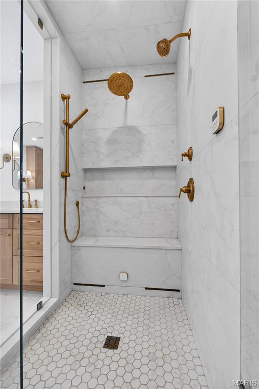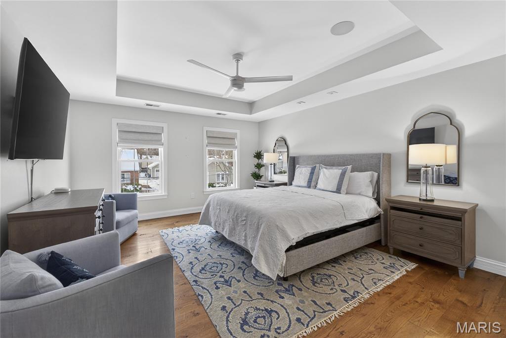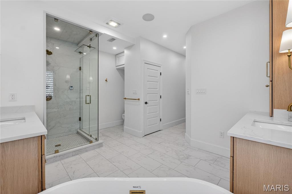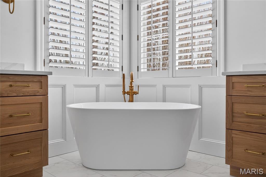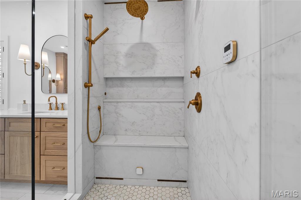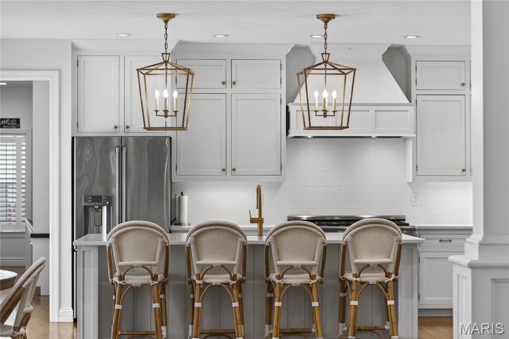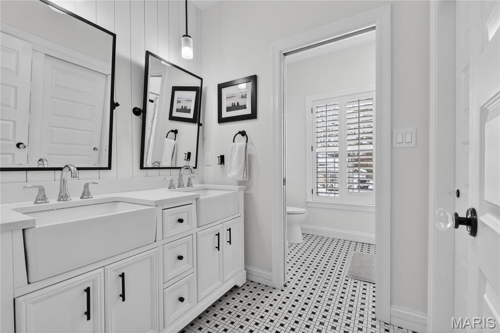 Meticulously Maintained and Expertly Renovated Two Story in the Heart of Kirkwood! Turn Key Home with over 5,000 total sq ft of living space has been impeccably kept. Welcoming Front Porch and Stately wood front door with glass inlay. Warm, Refinished hardwood floors greet you upon walking in and run throughout main level. Separate dining room and living Room both with wainscoting flank entry foyer. Family Room with gas fireplace and built in shelves opens to spacious breakfast Room with bay window and new glass sliding door (2022). Recessed lighting and built in speakers add to high end feel. Chef’s Dream kitchen with large center island, Upgraded Stainless steel appliances including 6 burner gas stove and wine fridge. Custom cabinetry with glass paneled cabinets all with quartz counter tops. Walk in pantry and Custom light fixtures. Mudroom with built in lockers for the Fam. Upstairs Primary Bedroom w coffered ceiling and walk in closet. Primary bath completely remodeled (2025) with His/Her vanities and free standing tub. Custom steam shower with ceramic tile, full glass surround, and brushed gold fixtures. Spectacular! Three others beds for the Fam upstairs all with newer carpet. Plantation shutters as well! Double sink and tub/shower combo in bath 2. Custom laundry room with designer tile and built in desk space. Finished LL with new flooring throughout (2022), full bath, and basement built ins. Tons of extra space for friends and guests. Sleeping area could easily be converted to bedroom. Lower Level Sauna stays with home. Brick Paver driveway with 3 car side entry garage with new doors. New Fence (2023) leads to Level, flat backyard. Perfect for adding pool if desired. Stone patio with built-in bbq grill and outdoor fireplace. All of this within easy walking distance to desirable Keysor Elementary and all things Kirkwood! Truly rare opportunity to own a high end home with all the right updates!