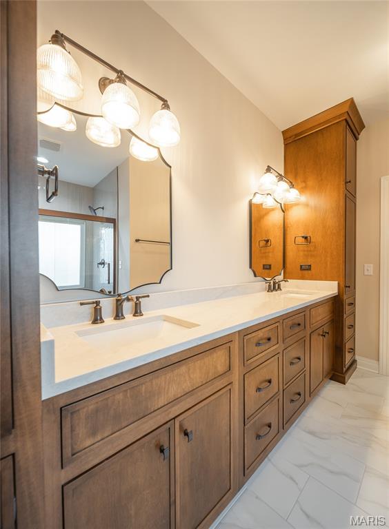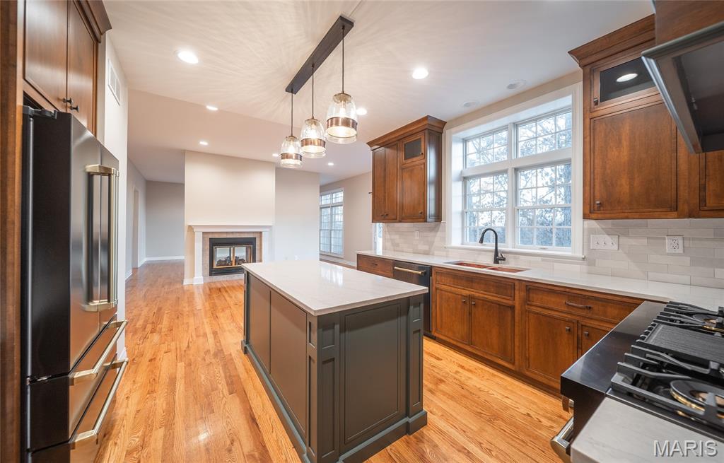 This 5-bedroom and 4.5 bath beauty has been renovated with a new kitchen including new cabinets, appliances, and lighting and also new lighting in the dining room, and entry, new paint, flooring, new primary bathroom remodel with large walk-in shower. Has new roof, and new HVAC. Nestled amongst the hills and trees in Oak Knoll South, it's a standout home and move in ready. The kitchen is equipped with a gorgeous stand-alone gas oven and cooktop. Appliances are black with brass accents. The center island contains a microwave drawer and counter seating at the end. There's a large French door refrigerator with two lower drawers for freezer with an adjacent coffee bar. The kitchen sink is hammered copper, easy to clean and anti-bacterial. A very nice walk-in pantry with custom cabinets and a coat drop zone was added to the utility room. A large deck extends across the back of the house and is accessible from the hearth room/kitchen. A gas fireplace separates the heath room from the generous living room with a beautiful full wall of windows. The primary bedroom is spacious and vaulted. The primary bathroom/closet is a dream with double vanities and a large walk-in shower. Upstairs are three bedrooms, a full hall bath and one of the bedrooms is ensuite. The entry has new herringbone inlaid floor of decorative bricks and new chandelier. Lower level has a newly finished 5th bedroom, used as a workout gym with gym flooring, full bath and family room with gas fireplace and built-is flanking each side. It walks out to the yard and patio.