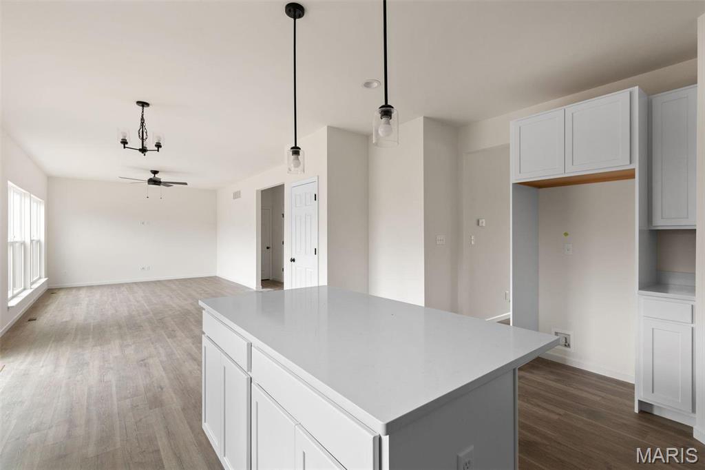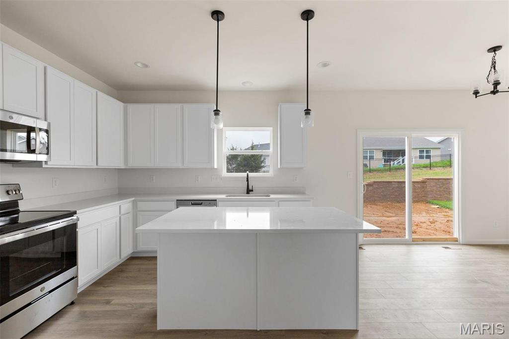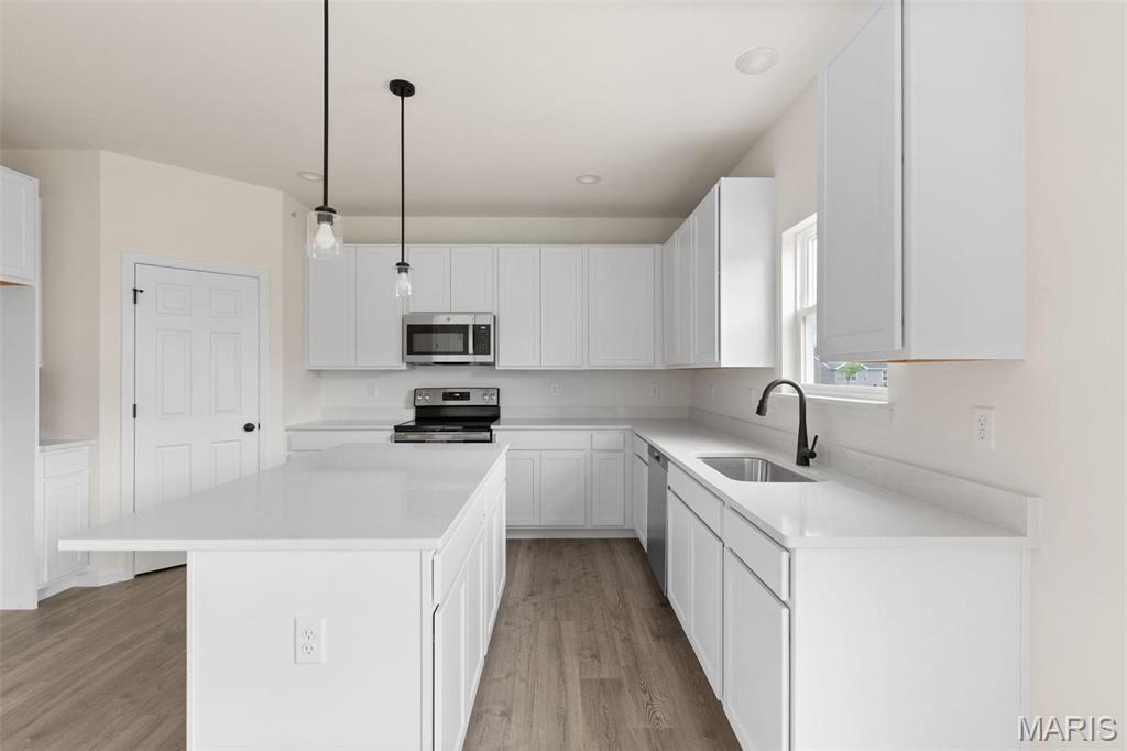 New McBride Homes Royal II 2-story, 4BR 2.5BA is READY NOW! Inside you’ll find a luxury kitchen with Benton Painted White 42” tall cabinetry, lg center island w/breakfast bar, quartz countertops, stainless steel GE appliances, & corner walkin pantry. The breakfast rm opens to the backyard w/sliding glass door. The main level has a spacious family room w/window wall & ceiling fan, formal dining, laundry, & powder rm. Open spindled staircase to the 2nd floor. Upstairs the master suite has a walkin closet, private lux bath w/double bowl vanity, tub, enclosed toilet, & walkin shower. Plus 3 extra bedrooms & hall bath. Upgraded lighting/plumbing fixtures, & ¾ bath rough-in at LL. Polo Grounds offers a barn-style clubhouse, playground, pickleball court, fire pit, scenic lake w/fountain & more. Located in Eureka near Highway 109/Hwy FF, in the Rockwood School District. Enjoy peace of mind w/McBride Homes’ 10 year builders warranty & incredible customer service! Similar photos shown.
