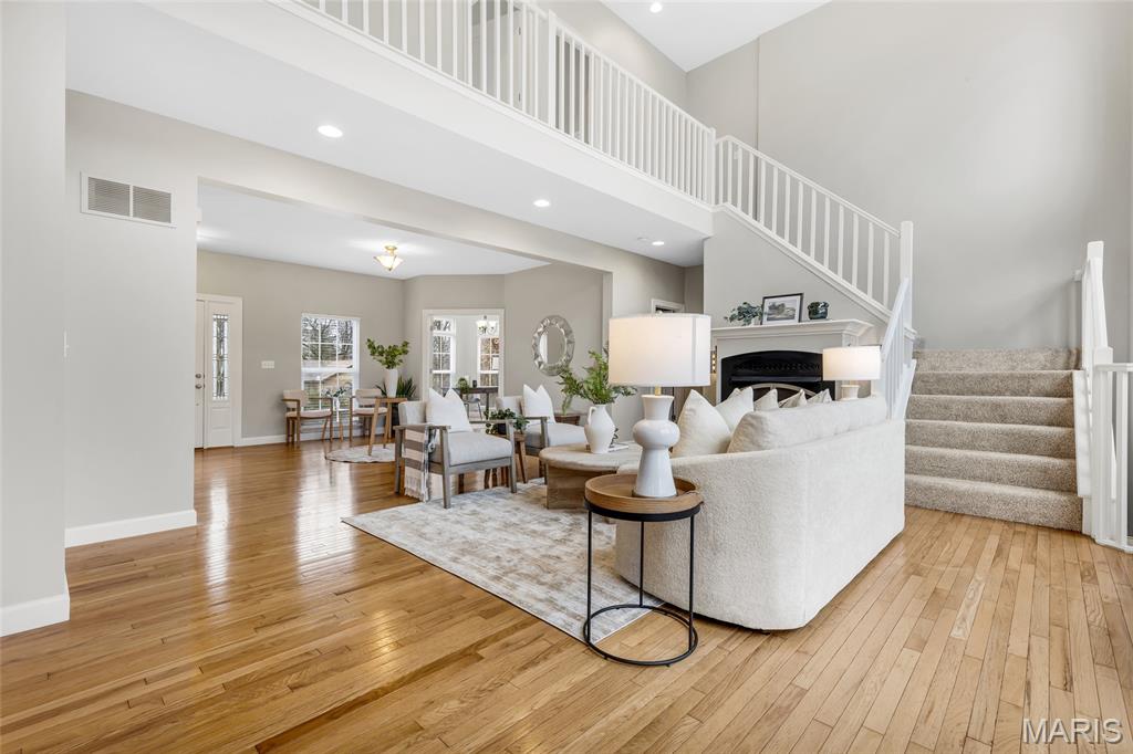 Welcome to 9 Pointer Court in Lake St. Louis, ideally positioned on a quiet cul-de-sac. This thoughtfully designed home offers flexible living spaces and a layout that works for today’s lifestyle. The main level features a bright first-floor office surrounded by windows — an ideal space for working from home or a quiet retreat filled with natural light. The kitchen opens to the primary living area, creating an easy flow for both daily living and entertaining. Upstairs, the private quarters provide comfortable bedroom space, while the finished lower level expands your options with an additional bedroom and full bath — perfect for guests, extended family, or a private suite setup. Step outside to enjoy the elevated deck overlooking the backyard — a great place to unwind or host gatherings. An oversized 2-car garage will certainly satisfy your storage needs. Located in the Lake St. Louis community, residents enjoy access to lakes, golf, parks, walking trails, and clubhouse amenities — all just minutes from shopping, dining, and highway access.