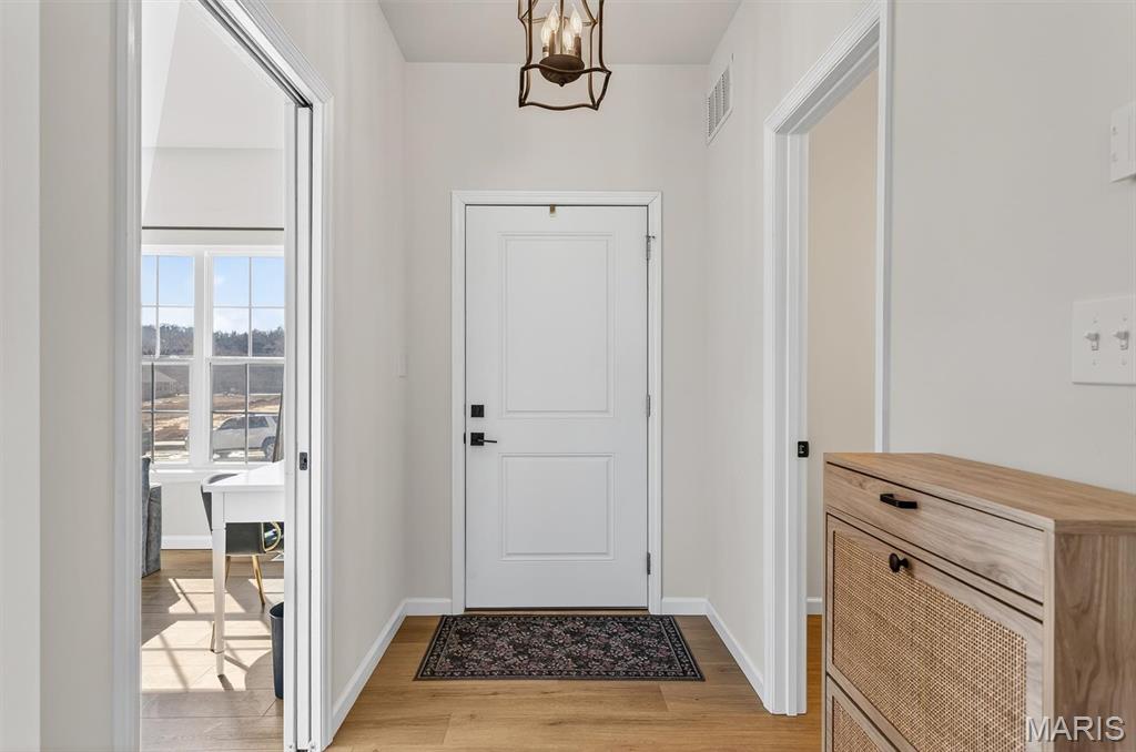 Welcome to 3655 Bullsway; this 4 bedroom, 2.5 bathroom home built in 2025 is a stand-out in Seckman schools! Step inside to a stunning main level with 9 ft. ceilings throughout featuring a functional flex room (great for an office), powder room, and a spacious great room with 12 ft. ceilings, large ceiling fan, and gas fireplace. The great room leads to your dream kitchen with an oversized island, gas range, custom 42” cabinets, and gorgeous quartzite countertops. The main-level primary suite is sure to impress with a walk-in closet and en-suite bathroom with double vanities and large soaking tub. Main-floor laundry gives added convenience. Upstairs you will find three spacious bedrooms and a full bathroom. The unfinished lower level includes rough-in bath and egress window for future finishing to your preference. The home is complete with a spacious 3 car garage. Don’t miss the opportunity to make this home yours!