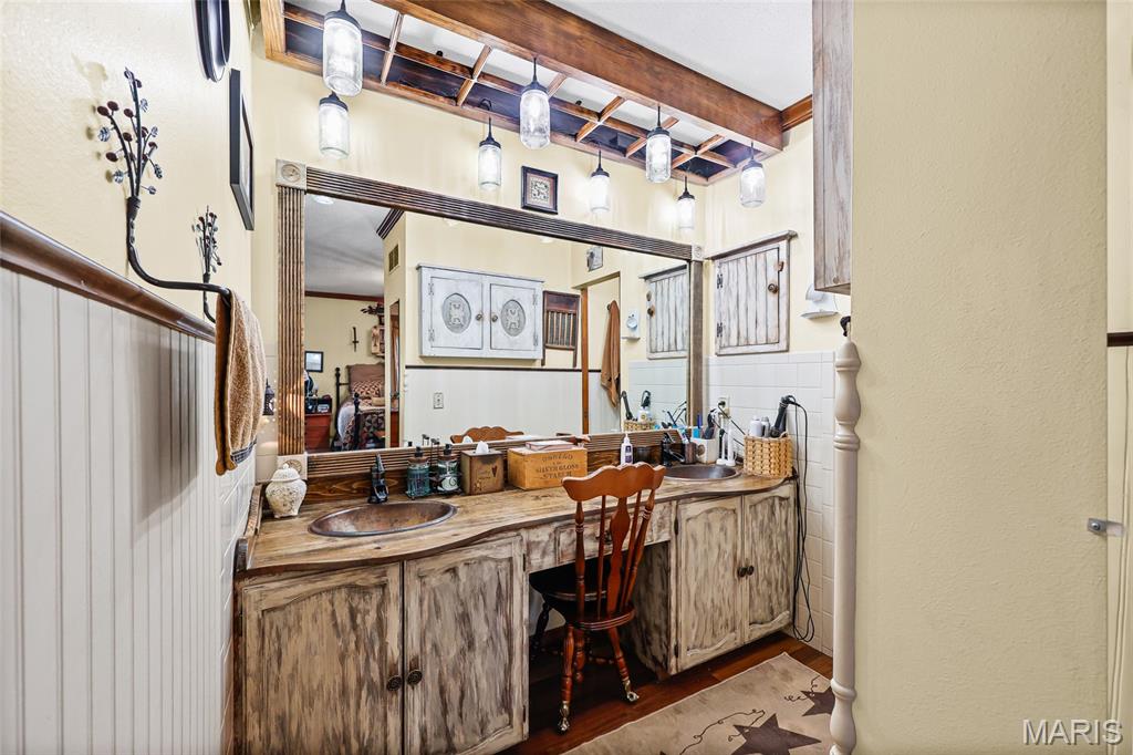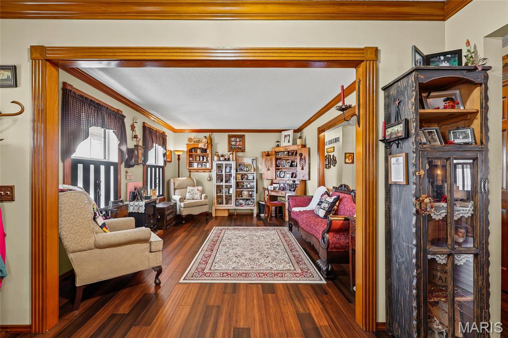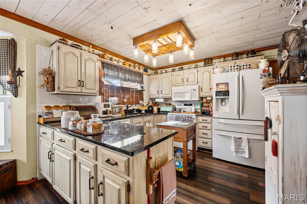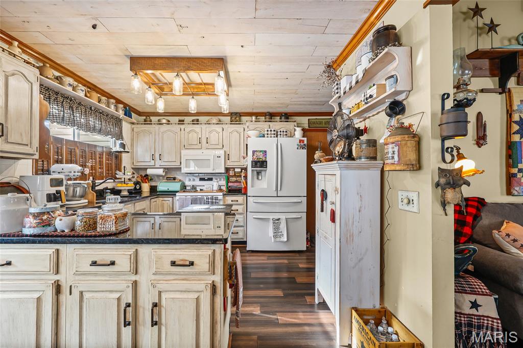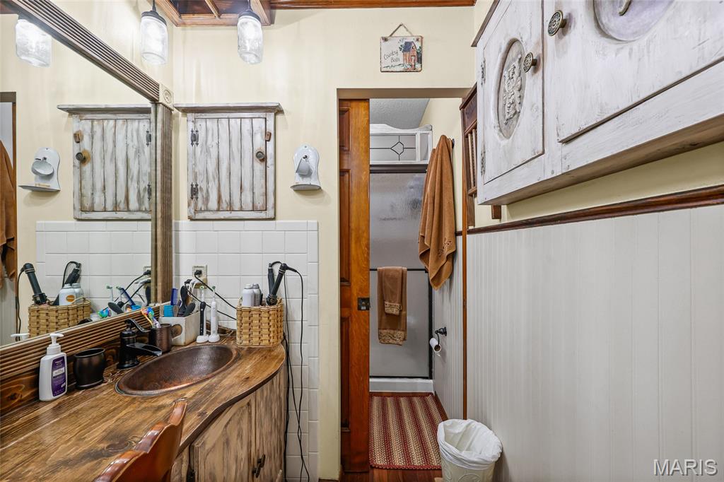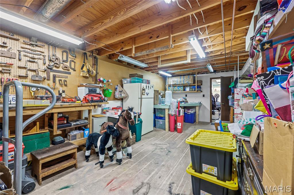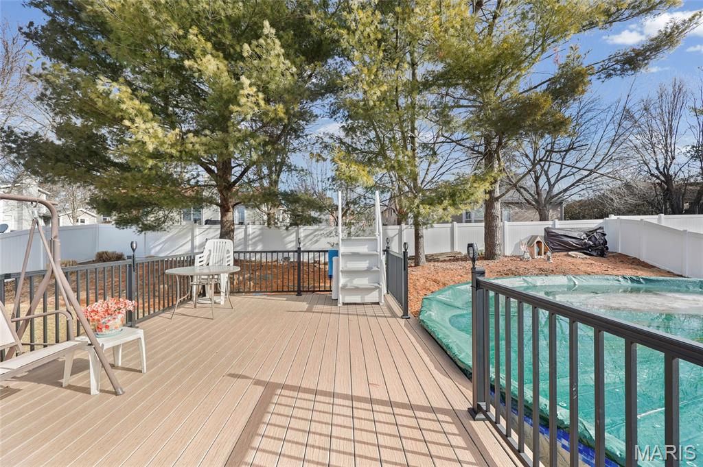 Welcome to this beautifully maintained 3-bedroom, 2-bath ranch offering a warm blend of character, comfort, and thoughtful updates throughout. The main level showcases gorgeous wood flooring and an inviting open floor plan, perfect for everyday living and entertaining. The eat-in kitchen features granite countertops, a striking wood-paneled ceiling, and flows effortlessly into the separate dining room. Enjoy both a formal living room and a spacious family room with vaulted ceilings and a cozy fireplace—ideal for gatherings or relaxing nights in. The large primary bedroom includes an ensuite bath with double sinks accented by elegant copper fixtures. Both bathrooms feature stunning Brazilian teak flooring, bringing a touch of luxury and durability. The finished lower level provides even more living space with a generous recreational room complete with a bar area, a sleeping room, a workshop, and abundant storage options. Step outside to an amazing level, fully fenced backyard—your own private oasis. Enjoy summer fun in the above-ground pool, unwind on the composite deck, or host gatherings on the patio. The property includes a vinyl privacy fence with a double gate on one side and a single gate on the other, offering both convenience and security. Additional perks include a finished 2-car attached garage and a roof that’s approximately seven years old. This home offers exceptional indoor and outdoor living spaces and has been thoughtfully cared for, making it truly move-in ready.