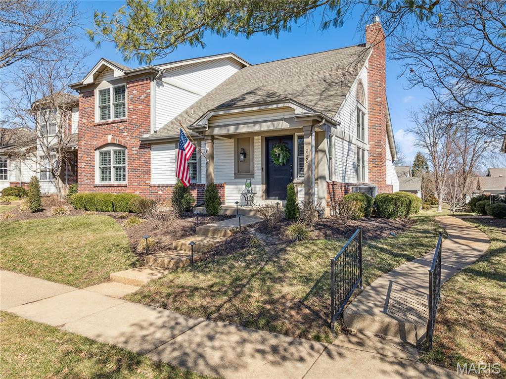 Welcome to one of the largest (3,200 sq. ft. of total living space) and most distinguished floor plans in the prestigious Villages at Baxter Ridge. Privately tucked within one of Chesterfield’s most sought-after neighborhoods, this extensively renovated 2-story condo offers timeless architectural appeal, designer finishes and effortless low-maintenance living. The great room commands attention with a soaring 17-foot ceiling, custom stone gas-log fireplace and rich hardwood flooring that anchors the main living spaces. The fully renovated kitchen features custom cabinetry, granite countertops, quality, stainless steel appliances and thoughtful design ideal for both everyday living and entertainment. The main and upper levels feature four spacious bedrooms and three full baths. The primary suite has been elegantly transformed with custom woodwork and a beautifully redesigned bath. The newly remodeled lower level adds an additional half bath with expansive living and storage space perfect for entertainment and recreation. Every detail reflects pride of ownership — custom closets by NewSpace, plantation shutters, Andersen windows, a newer sliding door opening to the spacious deck, an ornamental banister and a two-car attached garage with custom epoxy flooring. Major systems have been updated, including a newer furnace, AC and one of two water heaters. Residents enjoy access to community amenities including a swimming pool, clubhouse, tennis courts and pickleball courts — enhancing the lifestyle this exceptional home provides. An outstanding opportunity to own the premier residence in Baxter Ridge. NOTE: A brand new deck will be installed in 2026 and the current owner will pay the HOA's assessment that was recently received for the deck in full before closing.