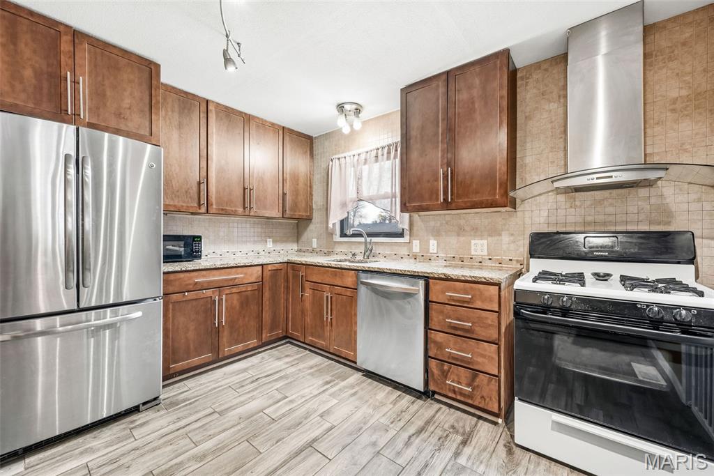 Super cute ranch style home, Updated kitchen with 42 in custom cabinets, granite countertops and stainless appliances. Large living room with hardwood flooring that flows into the hallway and in all 3 bedrooms. The full hall bathroom has an updated tub/shower surround and an adult height double vanity. Finish in the lower level includes a large family room with a built in bar and another room perfect for a LL sleeping room, an office or a playroom. Large corner lot with a double wide driveway for off street parking. Make your appt to view this home today.