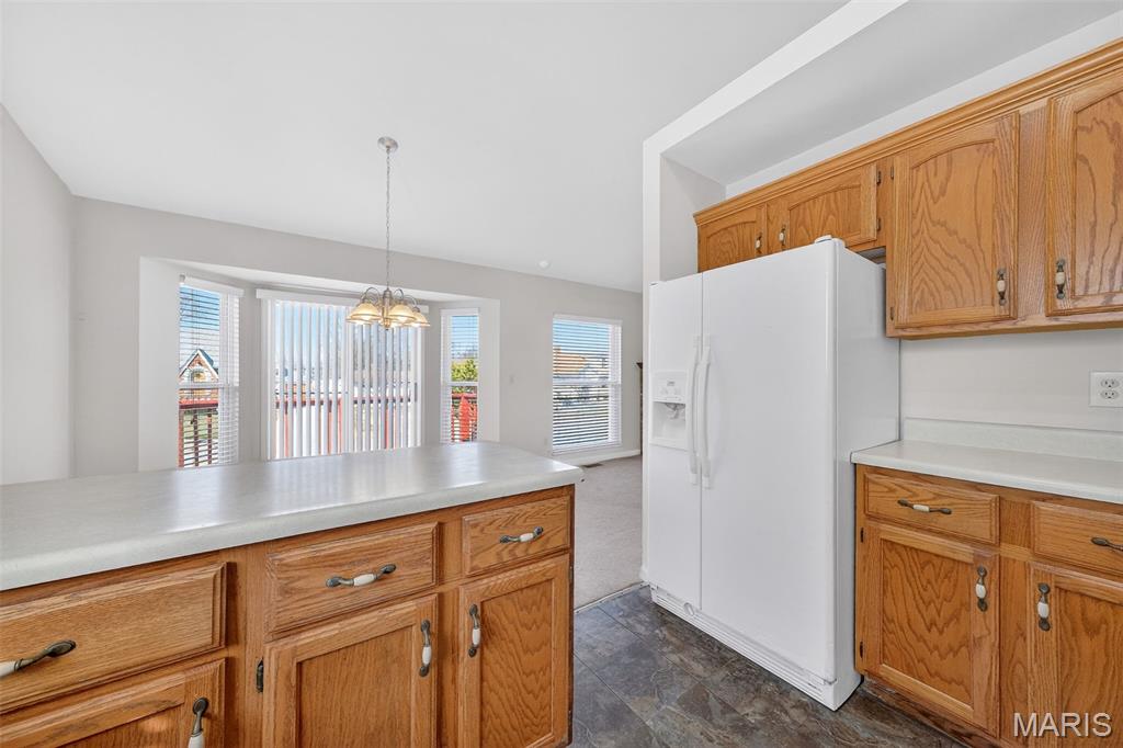 Enjoy this low maintenance 2 bedroom, 2 full bathroom villa with nearly 2,000 sq. ft. of living space in the hearty of Saint Peters. As you walk in, you will love the vaulted ceilings, gas fireplace and skylights that provide incredible natural light for your loved ones to gather. The kitchen has a gas range, refrigerator that is included, pantry and breakfast room with access to your deck. The primary bedroom suite features bay windows, ceiling fan/light and a spacious walk-in closet. The secondary bedroom also has large walk-in closet, bay windows and overhead fan/lighting. The lower level is partially finished with large recreational area, rough-in for future bathroom and newer HVAC system (2023). Additional features include a 2 car garage, covered front porch area, main floor washer/dryer hook-ups and 2 inch window blinds. Great location close to Mid Rivers Mall, grocery stores, shopping and easy access to Interstate 70.