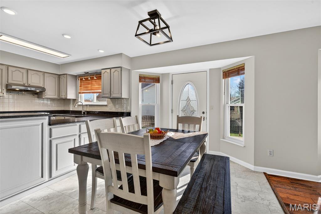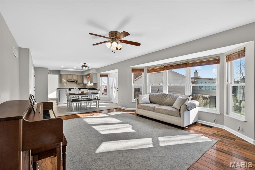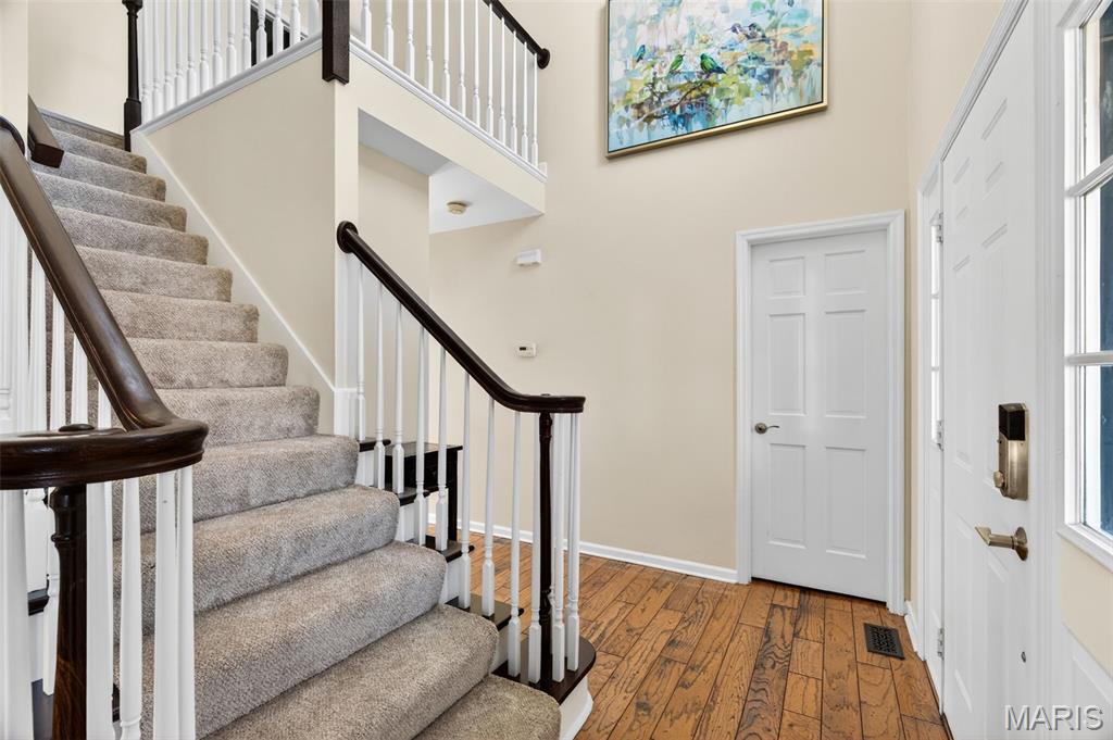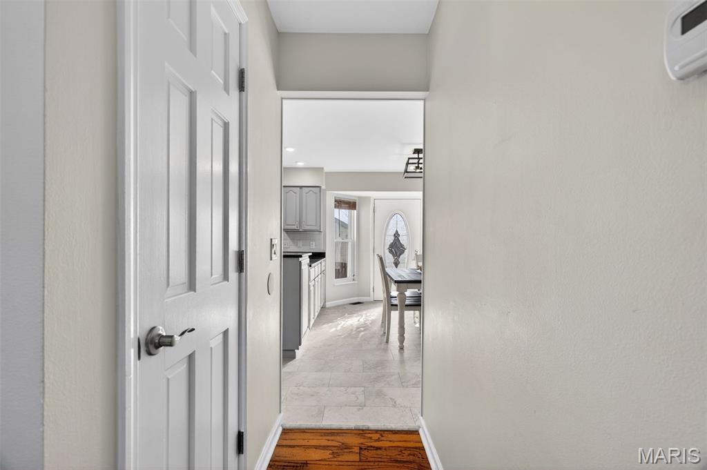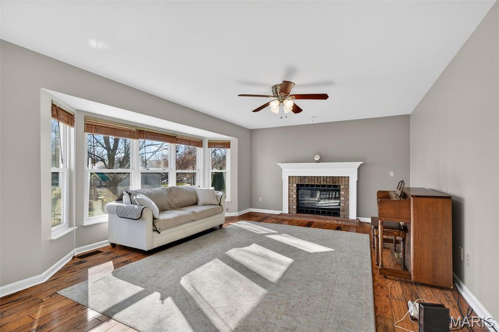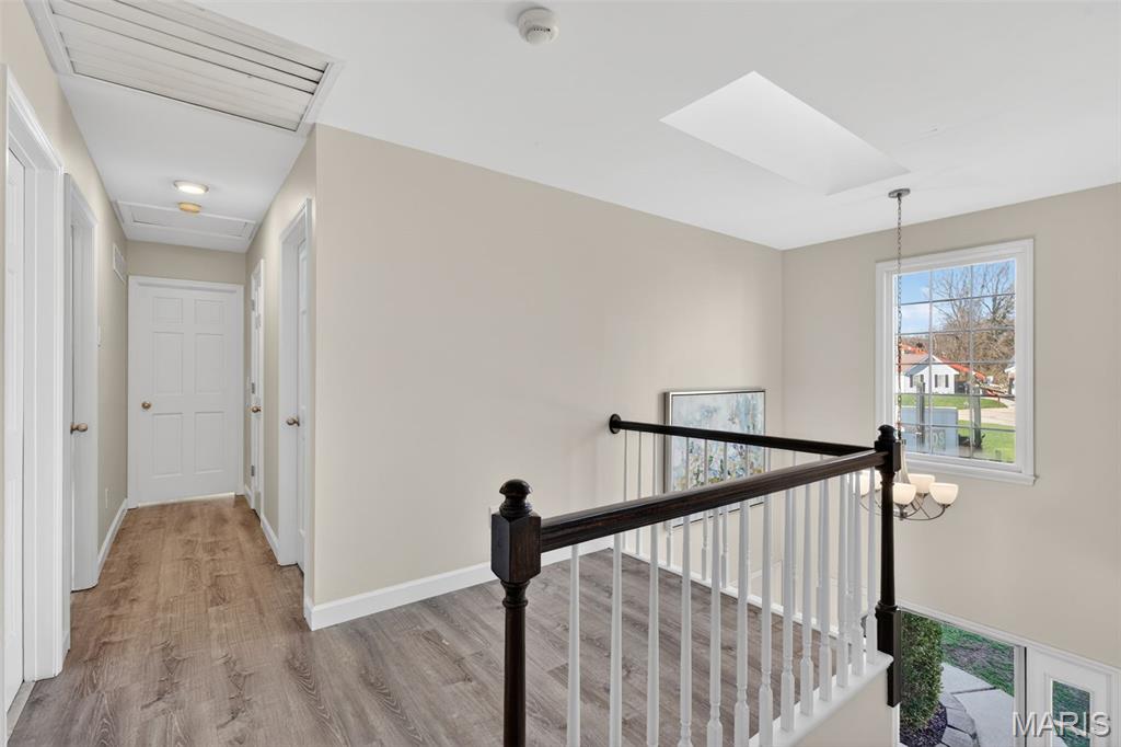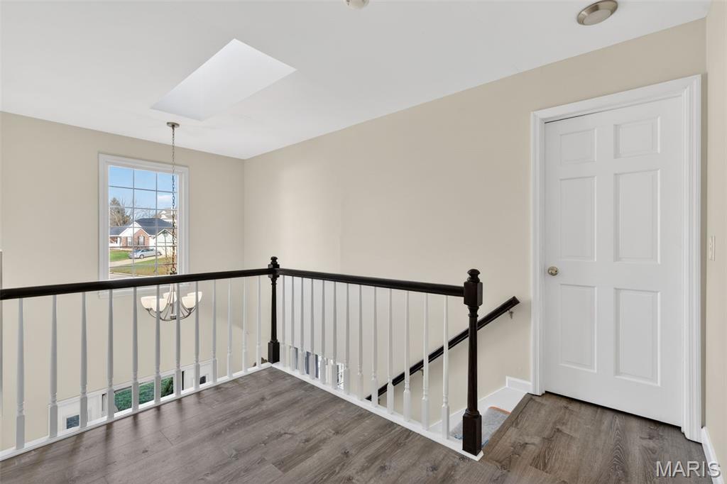 Welcome to 4923 Dresden Way — a beautifully refreshed two-story home offering space, style, and a location that’s hard to beat. From the moment you arrive, the charming covered front porch and inviting curb appeal set the tone. Inside, you’ll find hardwood floors, fresh paint throughout, and abundant natural light, highlighted by a classic bay window and a cozy fireplace that anchors the main living space. The updated kitchen is ready for both everyday living and entertaining, featuring granite countertops, new stainless steel appliances, and easy flow into the formal dining room. A main-floor laundry room adds extra convenience. Upstairs, enjoy the clean, modern feel of new luxury vinyl plank flooring throughout the second level. The primary suite is a true retreat with tray ceilings, fresh paint, a spacious walk-in closet, and a beautifully renovated bathroom complete with double vanities, a walk-in shower, and a freestanding soaking tub. Step outside to a large fenced backyard—perfect for gatherings, outdoor dining, or relaxing evenings. Additional improvements include new basement windows and added joist insulation, helping improve comfort and temperature control year-round. Located in a quiet, established neighborhood with excellent highway access, you’ll enjoy being just minutes from shopping and dining near the Mid Rivers area while still feeling tucked away. Outdoor enthusiasts will appreciate the walking path access to Veterans Tribute Park, about a mile away. Move-in ready, thoughtfully updated, and ideally located—this is one you won’t want to miss.
