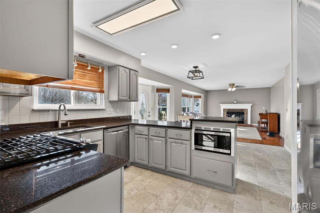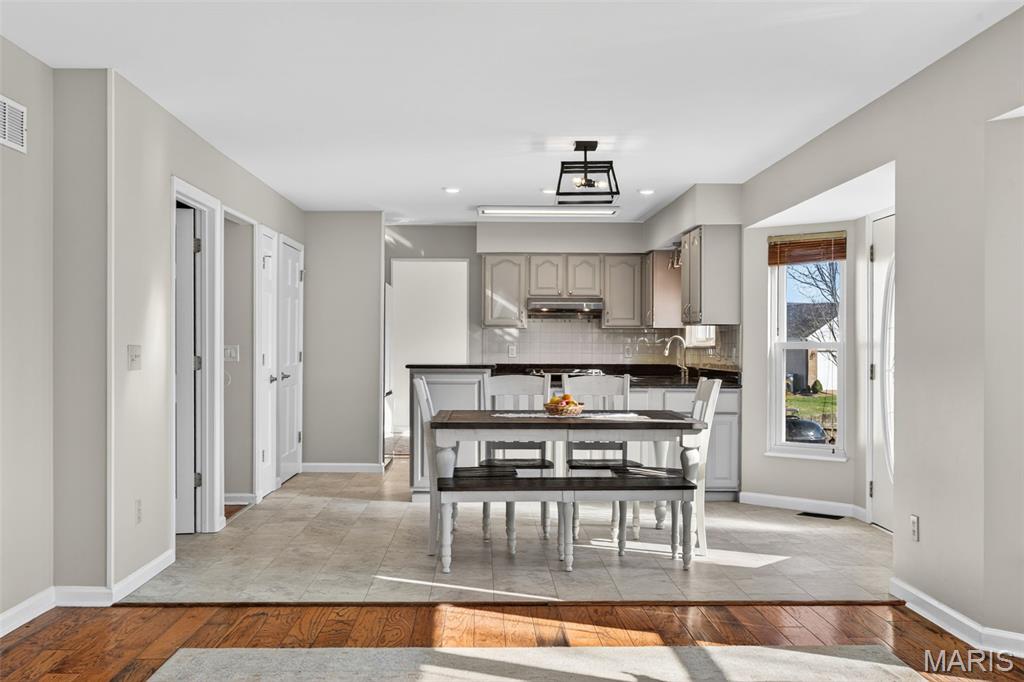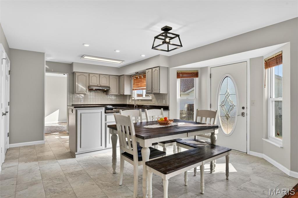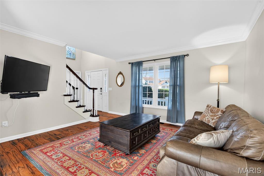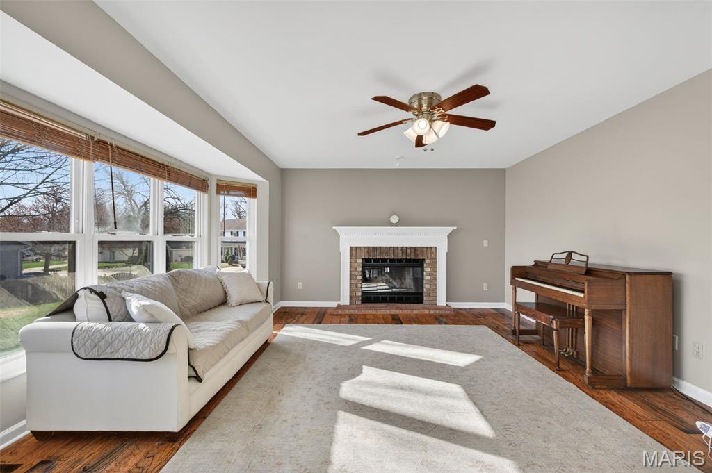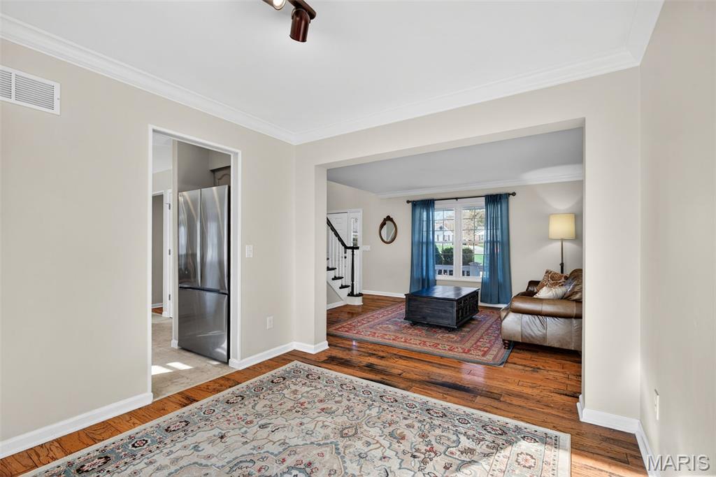 Welcome to 4923 Dresden Way — a beautifully refreshed two-story home offering space, style, and a location that’s hard to beat. From the moment you arrive, the charming covered front porch and inviting curb appeal set the tone. Inside, you’ll find hardwood floors, fresh paint throughout, and abundant natural light, highlighted by a classic bay window and a cozy fireplace that anchors the main living space. The updated kitchen is ready for both everyday living and entertaining, featuring granite countertops, new stainless steel appliances, and easy flow into the formal dining room. A main-floor laundry room adds extra convenience. Upstairs, enjoy the clean, modern feel of new luxury vinyl plank flooring throughout the second level. The primary suite is a true retreat with tray ceilings, fresh paint, a spacious walk-in closet, and a beautifully renovated bathroom complete with double vanities, a walk-in shower, and a freestanding soaking tub. Step outside to a large fenced backyard—perfect for gatherings, outdoor dining, or relaxing evenings. Additional improvements include new basement windows and added joist insulation, helping improve comfort and temperature control year-round. Located in a quiet, established neighborhood with excellent highway access, you’ll enjoy being just minutes from shopping and dining near the Mid Rivers area while still feeling tucked away. Outdoor enthusiasts will appreciate the walking path access to Veterans Tribute Park, about a mile away. Move-in ready, thoughtfully updated, and ideally located—this is one you won’t want to miss.
