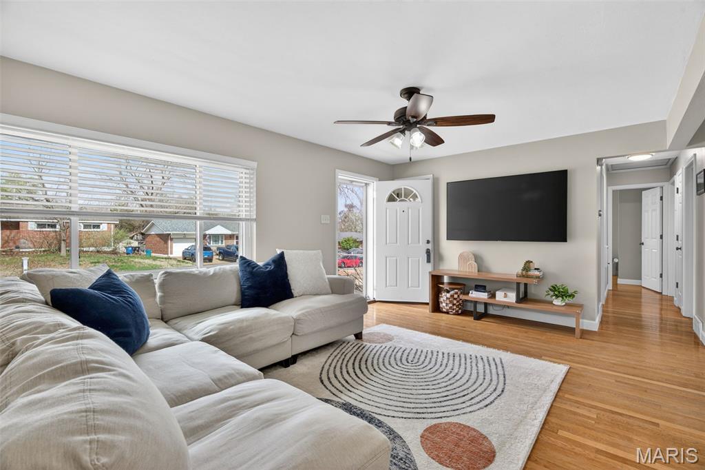 As you pull up, this all brick ranch immediately starts to pull on your heartstrings with its charming curb appeal. It's welcoming presence sits perfectly in this convenient Affton location just off Tesson Ferry. Step inside and the home instantly feels bright and inviting. Gorgeous picture windows flood the space with natural light, filling the open main living area and creating a warm place to gather. Enjoy the spacious kitchen featuring maple cabinetry, abundant countertop space for cooking and gathering, and a view overlooking the backyard. The dining room offers plenty of space for a table large enough to host all your friends and family. Hardwood floors run through the main level where all three bedrooms are thoughtfully located, each featuring custom closets by the St. Louis Closet Company. The spacious primary bedroom comfortably fits a king size bed with room for nightstands and includes its own private bathroom for added convenience. The finished lower level expands your living space even further and offers flexibility for whatever season of life you are experiencing. With two separate stairwells, a large recreation area, and a fun dry bar setup, it is a great spot for entertaining, movie nights, or playing. The additional sleeping space provides a perfect option for a guest space, home office, hobby room, or extra storage. Step outside to a flat, fully fenced backyard that offers plenty of room for pets, playtime, gardening, grilling, or relaxing evenings outdoors. Double pane vinyl tilt-in windows are approximately five years old, making cleaning easy while adding efficiency and peace of mind. The furnace and air conditioner are just one month old, offering peace of mind for the next owner for years to come. The home also features a spacious 23-foot deep two car garage, providing extra room for vehicles, storage, tools, or a workshop area which is a true rarity in this subdivision. Living here truly makes everyday life simple. You are just moments from South County favorites like Roberto’s Trattoria & Chophouse, Joey B’s, a movie night at Ronnie’s Cinema, fun outings at Grant’s Farm, and dinner at Bartolino’s South. Costco is just a quick car ride away, and easy access to Interstate 270 and 55 makes getting around the county or into St. Louis City quick and convenient. From the inviting interior to the fantastic location, life here just feels easy. Come take a tour or join us at the Open House this Sunday 3/22 from 1-3pm :)