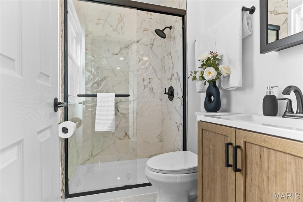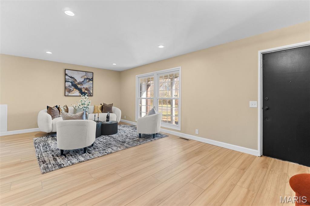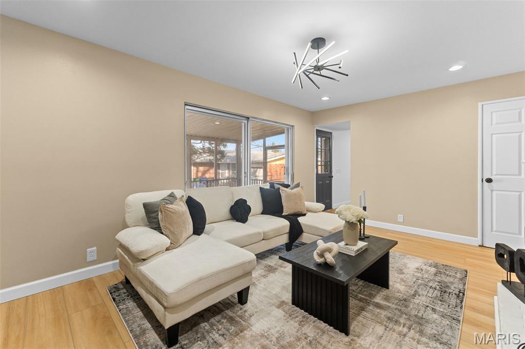 Welcome to this beautifully updated ranch-style home that blends modern design with comfortable living. From the moment you arrive, you'll appreciate the classic brick exterior, charming front porch, and freshly landscaped yard that creates inviting curb appeal. Inside, the home features a bright and open layout with new luxury flooring, recessed lighting, and contemporary fixtures throughout. The spacious living areas provide plenty of room for relaxing or entertaining, while large windows allow natural light to fill the home. The fully renovated kitchen is a standout feature, offering stylish white shaker cabinets, sleek black hardware, butcher block countertops, stainless steel appliances, and a modern tile backsplash. The open design flows seamlessly into the dining area, highlighted by a striking modern light fixture and elegant accent wall. All bathrooms have been completely updated with high-end finishes including modern vanities, matte black fixtures, and beautiful marble-style tile work. The hallway bathroom features a double vanity and full tub/shower combination, while the primary bathroom includes a sleek glass-enclosed shower. Additional highlights include, spacious bedrooms with ample closet space, contemporary lighting and ceiling fans. Updated flooring throughout the home, fresh landscaping and outdoor curb appeal, new 200-amp Electric Panel (Jan 2026), Plumbing stacks (Jan 2026), modern finishes that make the home truly move-in ready. This home offers the perfect combination of style, comfort, and functionality, ideal for homeowners looking for a beautifully updated property without the hassle of renovations. Don't miss the opportunity to make this stunning home yours.