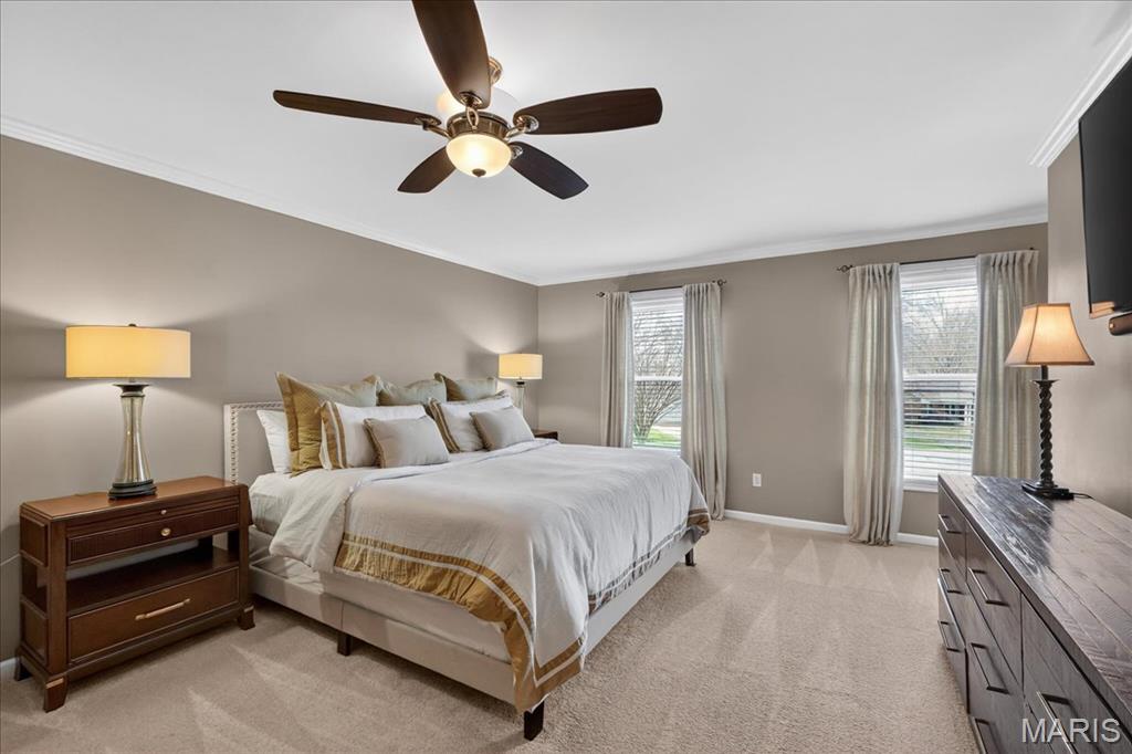 Expanded 2-sty Colonial with remarkable curb appeal. Located in a highly desirable Clarkson Woods neighborhood with award-winning Rockwood schools. Extensive updates and improvements during ownership include roof, windows, HVAC, hot water heater, hardwood flooring and maintenance free deck and much more. Classic center hall floor plan features oak hardwoods, detailed trim work & custom built-ins. Gracious entry foyer leads to formal living & dining rooms with crown molding & full-height windows, spacious family room with wet bar & brick fireplace flanked by built-in bookcases and private office with built-ins and spiral staircase leading to Lower Level. Chef’s kitchen featuring glazed white cabinetry, granite countertops & 9’ center island opens to serine screened porch perfect for entertaining or relaxing with your morning coffee. Primary bedroom suite offers an appealing retreat with customized walk-in closet & luxury bath. 3 large additional bedrooms & hall full bath complete the 2nd floor living quarters. Lower Level entertainment space includes recreation room & game room plus office & full bath. Situated on an extensively landscaped cul-de-sac lot with composite deck, covered patio, circular drive & 2-car garage. Don’t miss this well loved and maintained home!